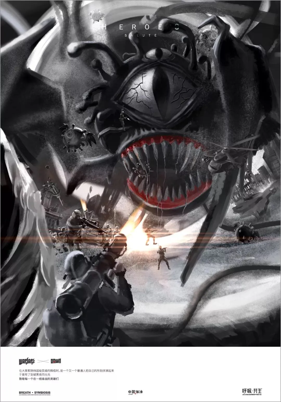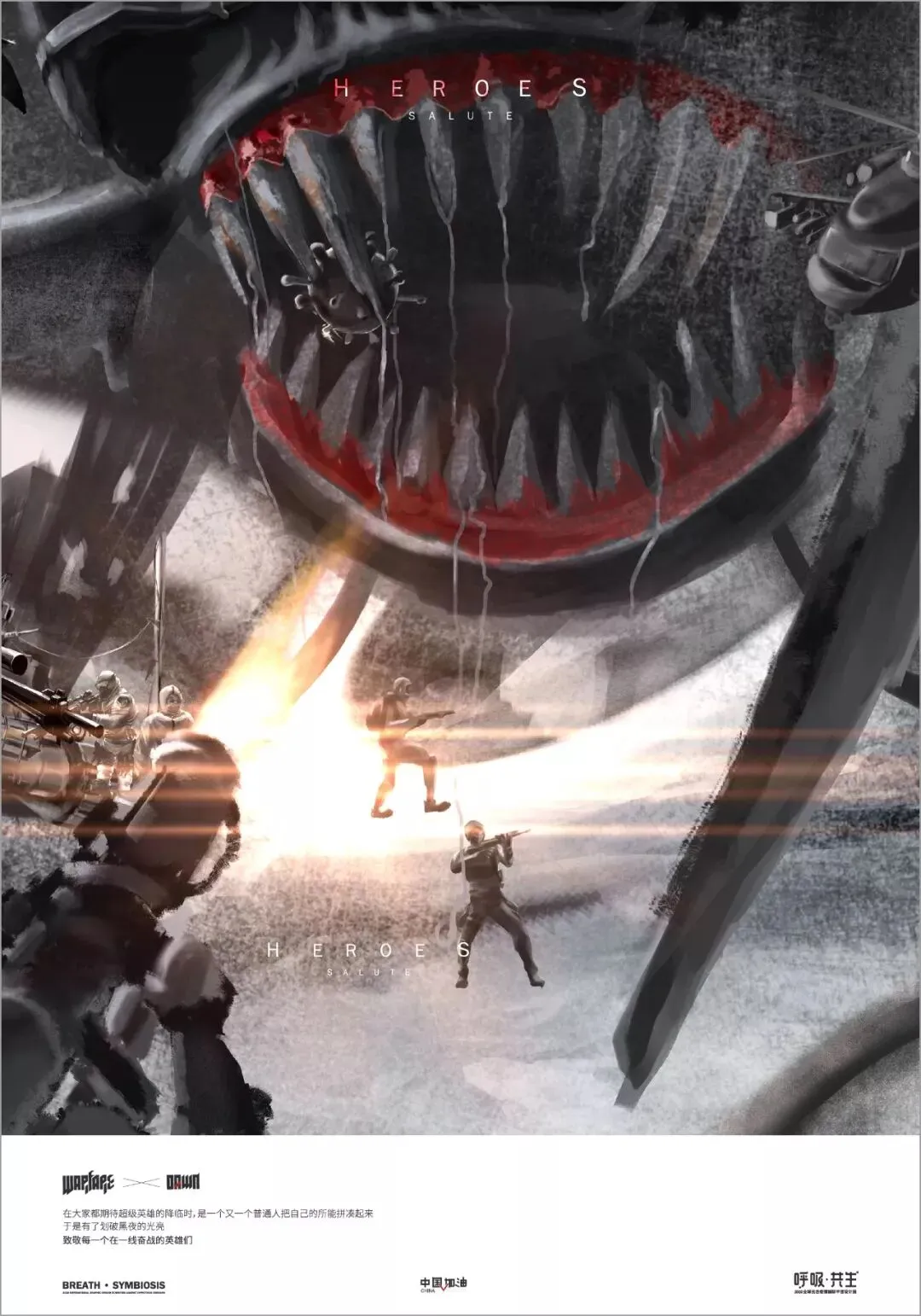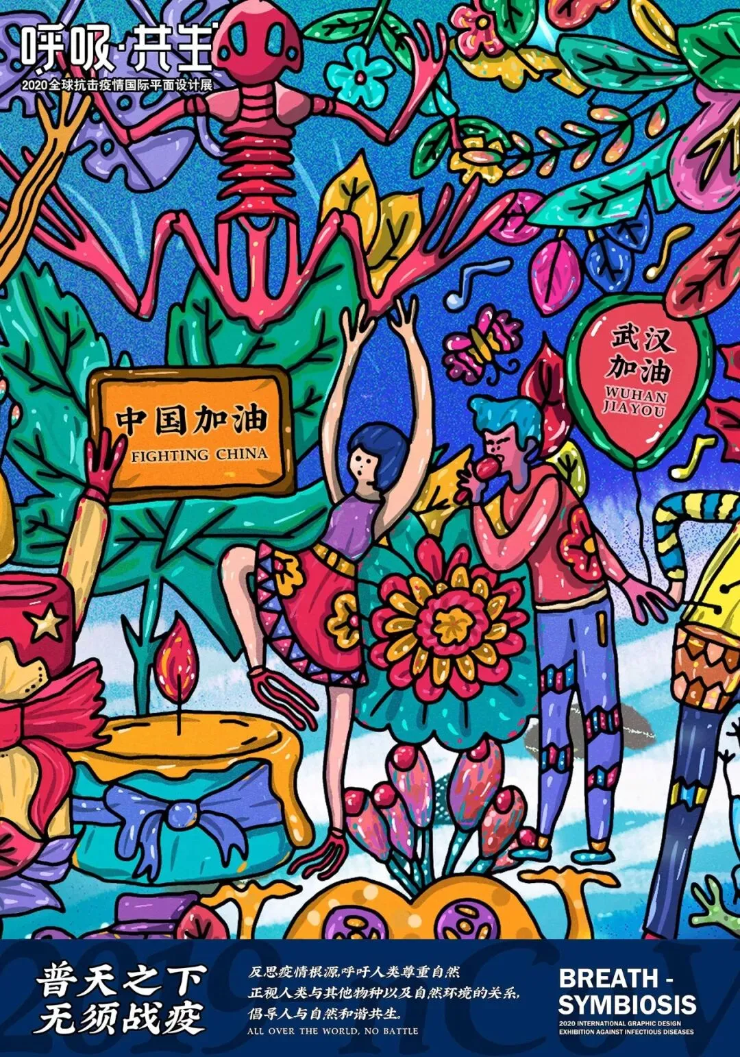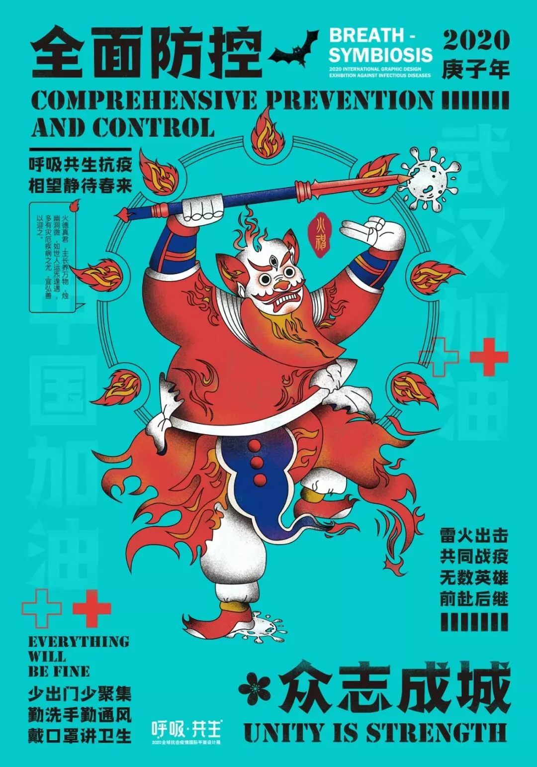 中国在全国人民辞旧迎新之际,遭受了从武汉向全国蔓延的“新型冠状病毒感染肺炎疫情”。要求紧紧依靠人民群众坚决打赢疫情防控阻击战,全国上下紧急部署动员,掀起了“防控感染,抗击疫情”斗争,书写了一个又一个感人的故事。在这个万众一心、同抗疫情的重要时刻,新青年设计师联盟、合肥平面设计联盟等联合国内高校、设计机构呼吁全球设计师群体,以“呼吸·共生”为主题设计作品,大家“同呼吸、同命运”,用设计力量抗击“新型冠状病毒”,讴歌抗疫精神、宣传防疫知识、倡导人与自然和谐共生。