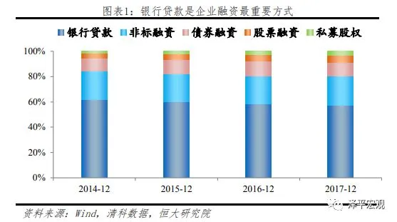 我国企业融资方式总体来说可以分为内源融资及外源融资,内源融资主要指企业留存收益以及资本金等,外源融资则是企业融资面临的主要变量,包括银行贷款、非标融资、债券融资、股票融资、股权融资、民间借贷等领域。由于民间借贷数据难以有效测算,我们以前五类作为测算分析对象,加总得到企业融资来源全景图。