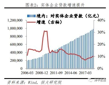 贷款是我国实体企业长期以来最主要的融资渠道。截至2018年三季末,央行公布的企业部门贷款余额达88万亿元,考虑住户部门贷款包含个体工商户以及企业主以个人名义举借的经营性贷款,加回该部分,得到截至2018年三季末,对实体企业贷款余额约98万亿,增速达10.2%,占实体企业总融资规模60.2%。从结构上来看,自2009年起,中长期贷款为银行信贷投放的最主要方式,占比约为40-50%。