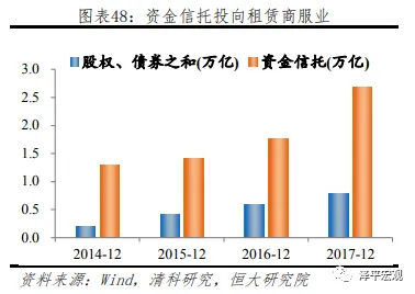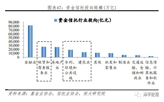 非标融资是基建领域重要资金来源之一。从资金信托按投向数据来看,与基建紧密相关的建筑、租赁商服、水利三大行业均为资金信托前5大投资领域,2018年6月底规模达5.89万亿,占当年资金信托总余额的31%。其中租赁服务和水利行业,资金信托余额远超其债券、股权融资之和,是债务融资重要方式。