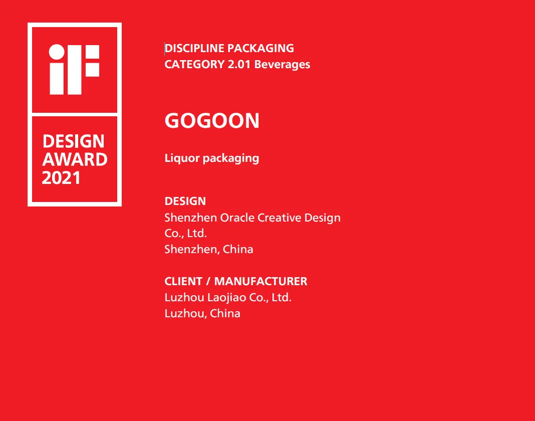 自1953年设立以来,由德国历史最悠久的工业设计机构——汉诺威工业设计论坛(iF Industrie Forum Design)每年定期举办的iF设计奖(iF Design Awards)已成为全球公认表彰优良设计的标志。该奖项每年面向全球设计师和制造商等征集优秀的建筑、产品、室内、包装、传达、服务以及专业概念设计,由全球超过 60 位来自设计、产业与建筑领域的知名专家所组成的评审团对参赛作品进行评鉴,并以“独立、严谨、可靠”的评奖理念闻名于世。不仅仅是设计盛宴iF设计奖,自去年10月破光上市以来,“高光”在短时间内就已荣获多项大奖,并将南都周刊“年度品质之饮”、2021新榜大会“年度营销潜力品牌”、2021年中国酒业金樽奖“新势力品牌TOP10”、2020年度“青酌奖”酒类新品(白酒类)、2021最美酒瓶设计金奖、2021最美酒瓶设计奖最佳创意奖等悉数收入囊中。