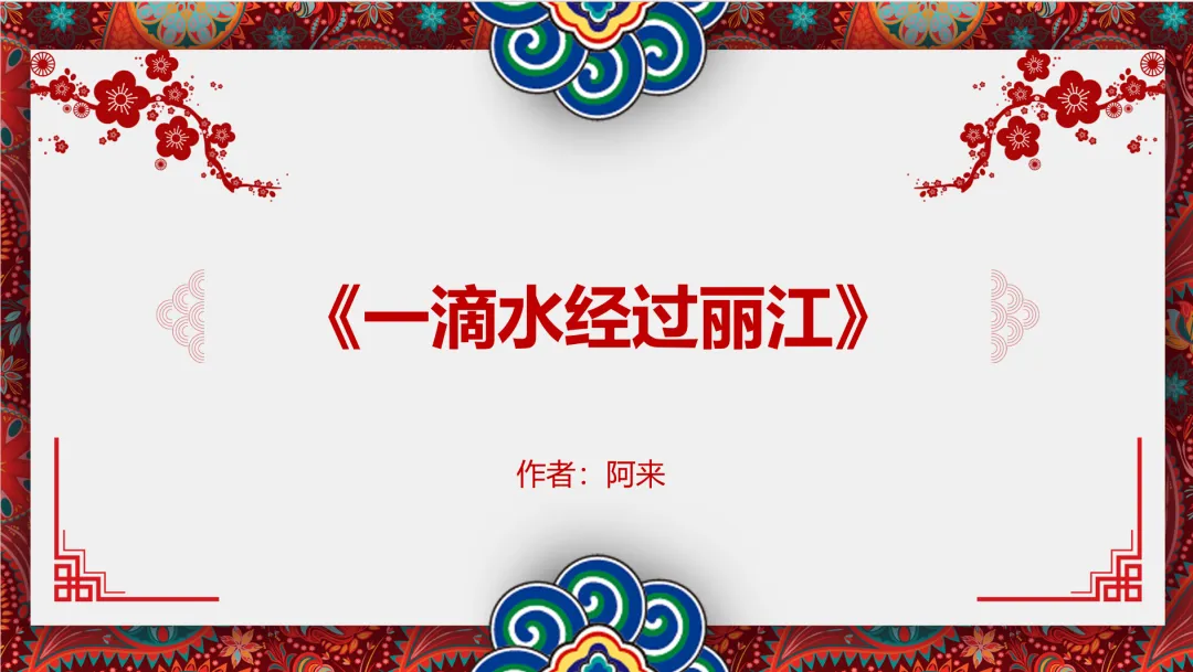 本单元我们主要学习的是游记类散文。所谓游记,就是在写作者去了什么地方,他看到了什么景色,又因此触发了什么思绪。因此,我们在阅读游记的时候,也应该着重关注作者的所至、所见、所感这三个具体的要素。今天我们要学习的这篇课文,有一些特殊,请同学们跟随一滴水的脚步,去看看在祖国的西南边陲,一座古老而静谧的小城里,这滴水究竟看到了怎样别致的风景,又发生了什么奇妙的故事呢?