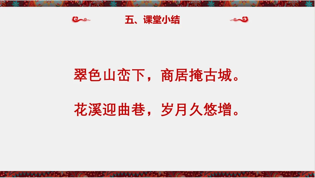 今天,我们一同学习了《一滴水经过丽江》这篇课文,跟随者作者新颖又独特的笔调,我们游览了丽江独特的风土人情。希望大家可以在学习的过程中,再次掌握游记的写作特点与阅读基本要素。“读万卷书,行万里路!”