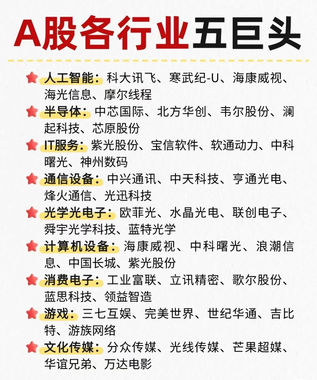 拒绝杂毛,A股各行各业5大巨头企业盘点+A股9大科技主线龙头梳理!