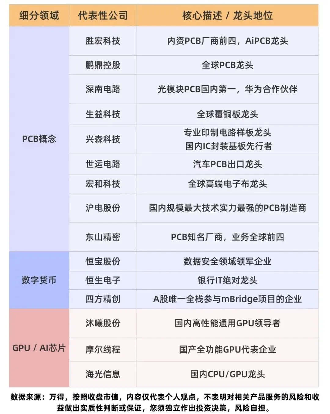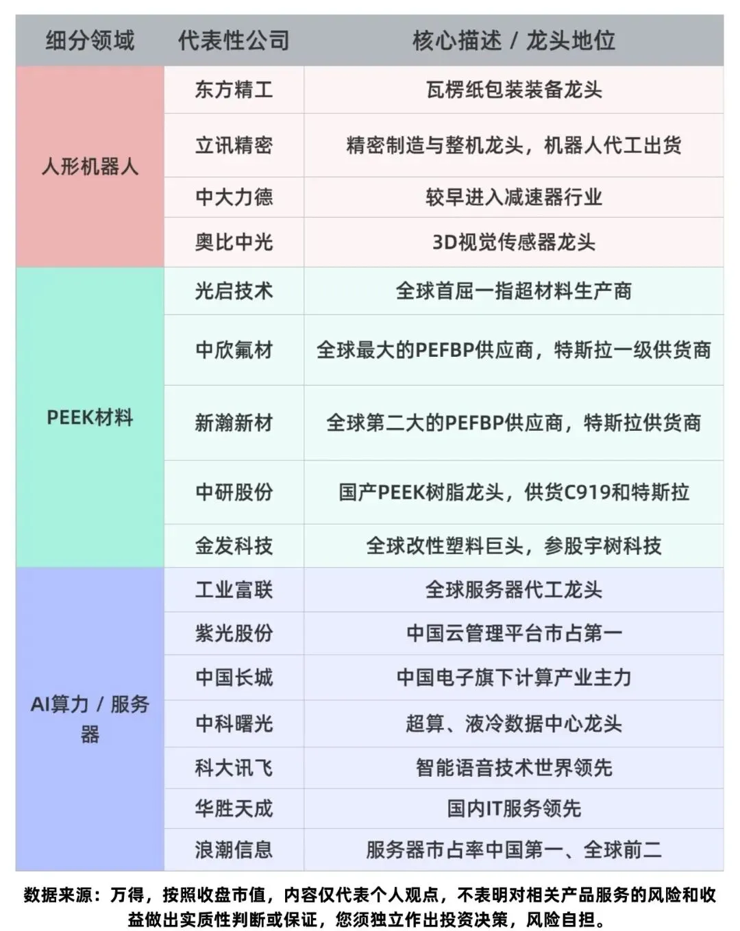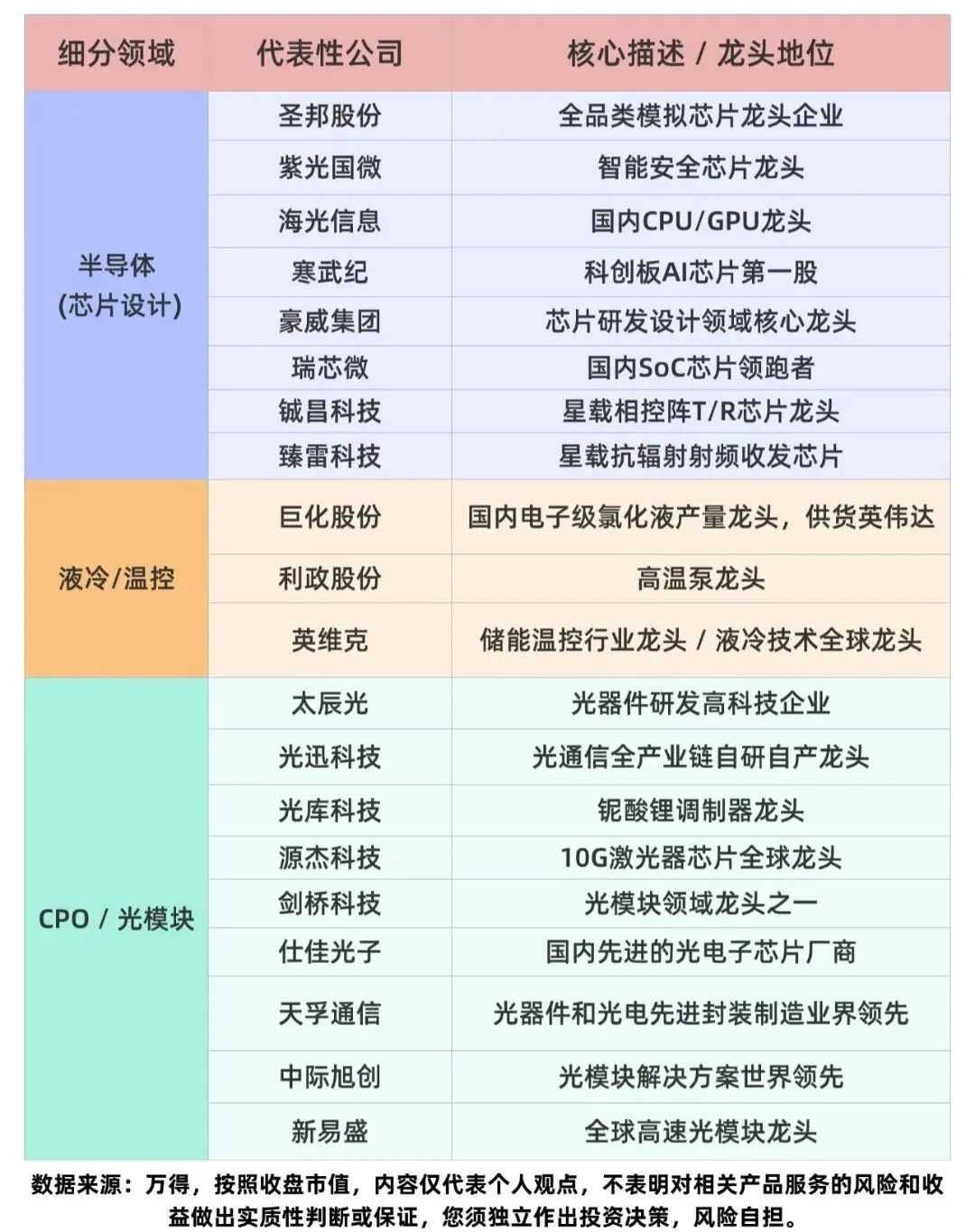⚠️ 风险提示:本文仅为行业投资逻辑梳理,不构成任何投资建议。股市有风险,投资需谨慎。锁定科技主线,选股先找硬核龙头。半导体全产业链、CPO光模块、人形机器人、AI算力、PET铜箔、PCB、数字货币等9大黄金赛道核心龙头,每一家都是细分领域的绝对领跑者,深度绑定行业景气度与国产替代大趋势。在九大科技赛道中,AI算力基础设施(含AI芯片、光模块、液冷) 受益于全球AI大模型算力需求的目前;半导体全产业链是国产替代与国家安全的战略核心,长期成长空间广阔;人形机器人则是下一代计最强算平台的产业革命方向,处于产业化爆发前夜,具备极高的长期投资价值。数据全网公开,仅供参考不能作为投资依据,行业科普不作推荐。投资有风险,入市需谨慎。资料仅供参考不能作为投资依据,文章提及个股只做科普,不作推荐,不对任何人构成投资建议!更多热门题材概念,进入下方主页收索关键即可查看!点赞关注下次不迷路!