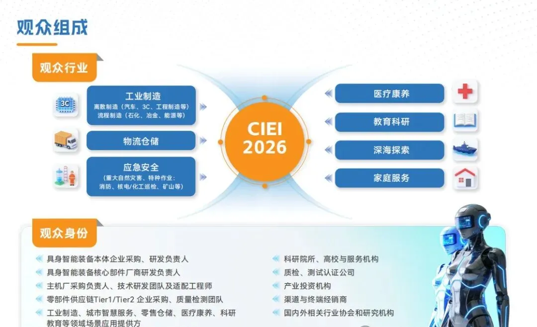 CIEI——作为聚焦“具身智能”全产业链的前沿融合型国际展会平台,旨在构建一个超越传统展览的价值新枢纽。将以“技术革新”为支点,“生态融合”为脉络,不仅汇聚全球前沿科技与顶尖企业,更深耕于商务合作、理念共创与未来洞察的核心场景。