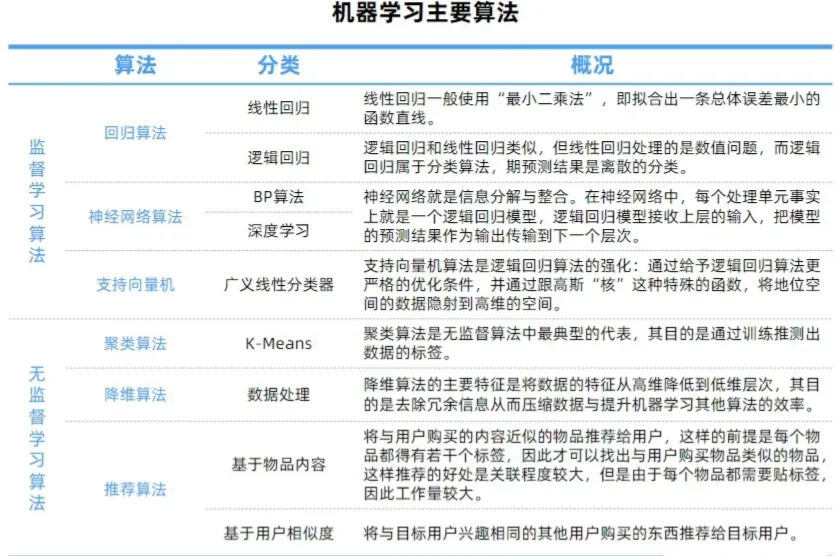 机器学习人工智能的核心,是使计算机具有智能的根本途径。机器学习专注于算法,允许机器学习而不需要编程,并在暴露于新数据时进行更改,让计算机不依赖确定的编码指令,模拟或实现人类的学习行为,以获取新的知识或技能,重新组织已有的知识结构使之不断改善自身的性能。基于处理数据种类的不同,可分为有监督学习、无监督学习、半监督学习和强化学习等几种类型。基于学习方法的分类,可分为归纳学习、演绎学习、类比学习、分析学习。基于数据形式的分类,可分为结构化学习和非结构化学习。