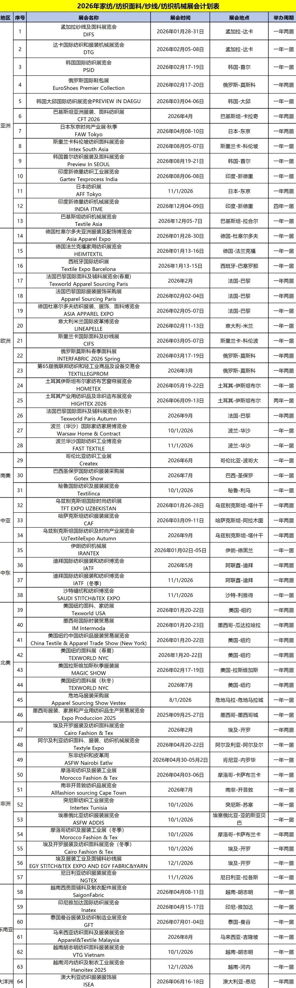 纺织机械展会计划表