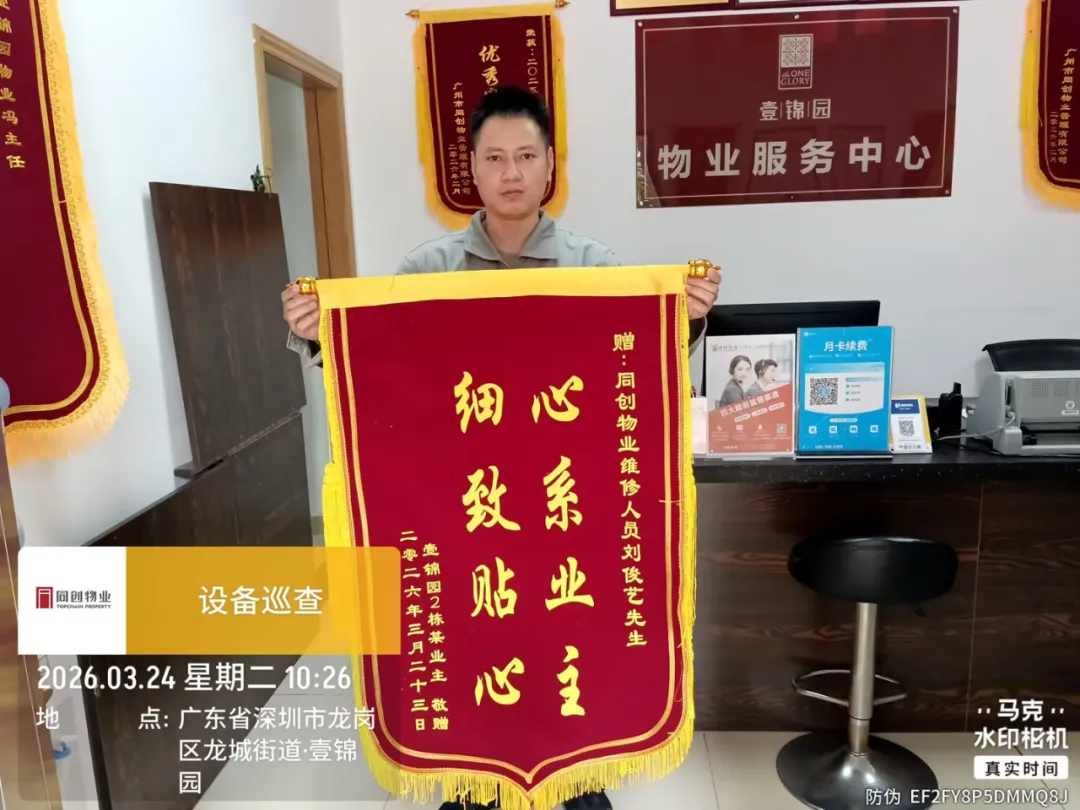 从棘手故障到圆满解决,一面锦旗承载着业主的认可。同创物业将继续坚守服务初心,用专业与细心守护每一位业主的美好生活。