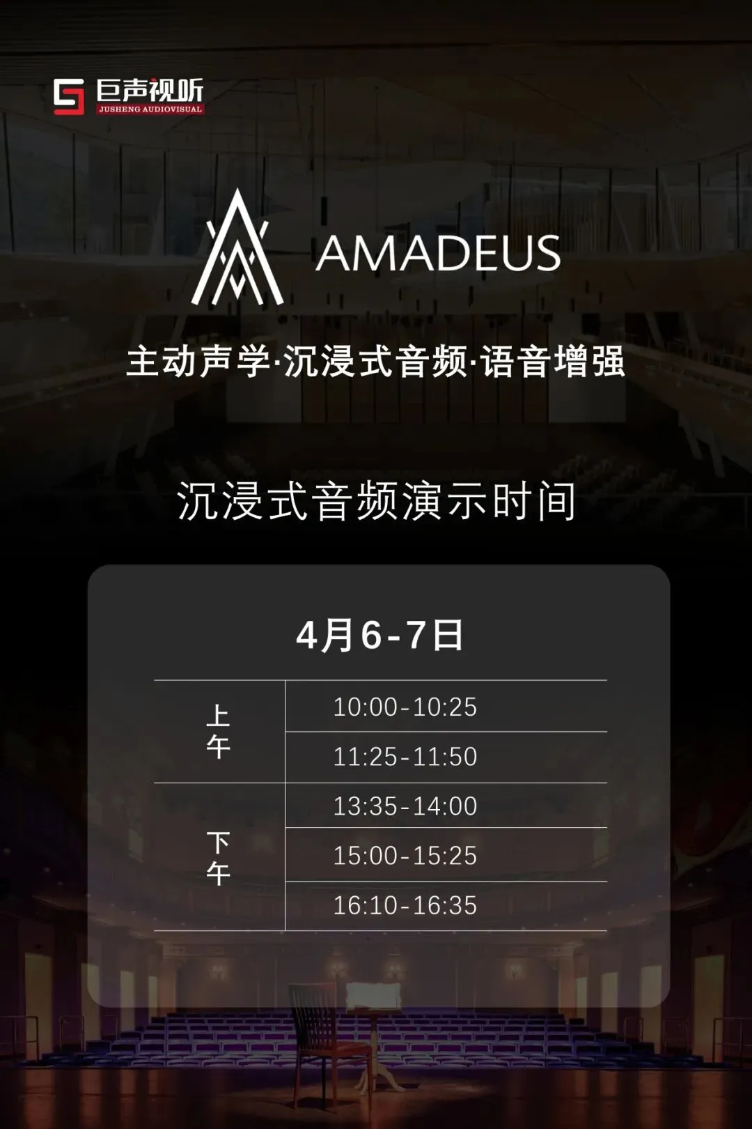 本次展会,现场将打造AMADEUS 3D 沉浸式音频体验空间,以顶尖声学技术还原多维声场,带来震撼 “声临其境” 体验,诚邀您亲临鉴赏!