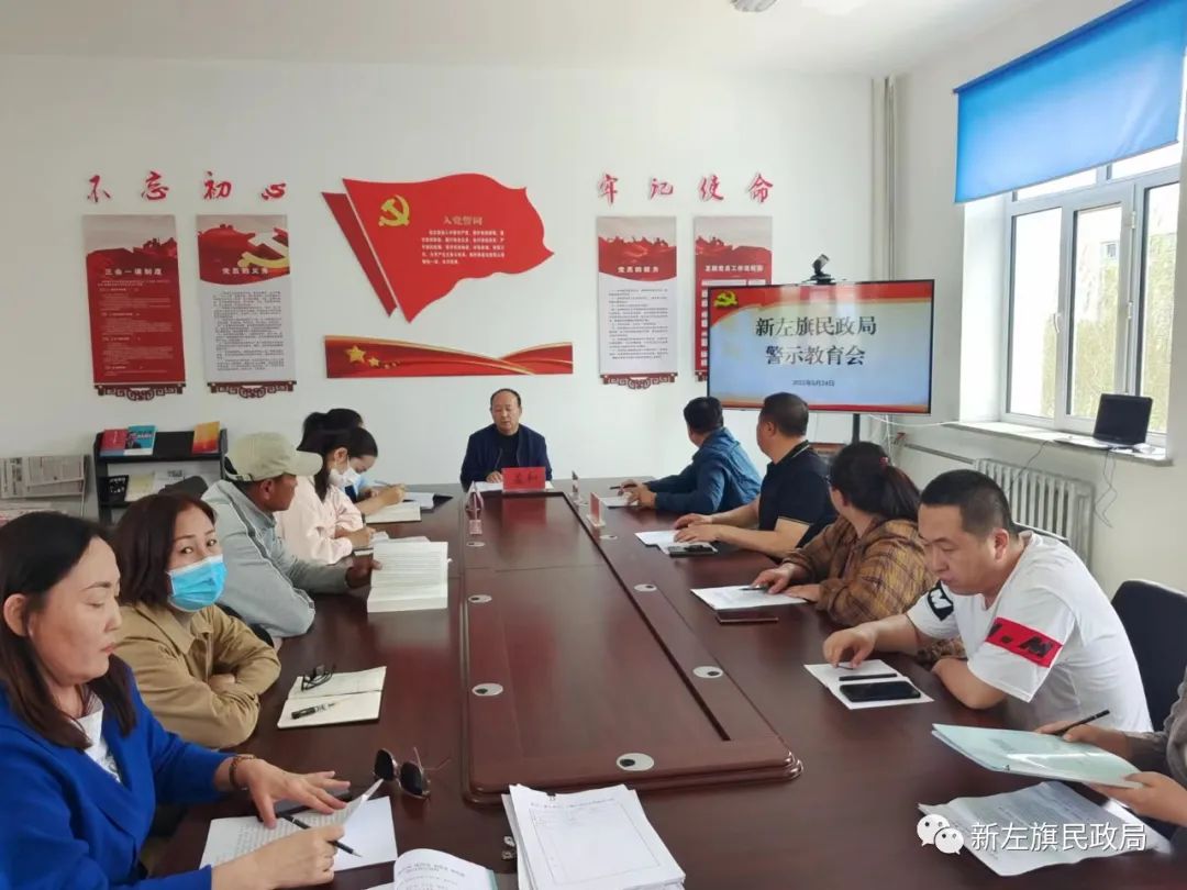 5月24日,新巴尔虎左旗民政局召开集中治理党内政治生活庸俗化交易化问题警示教育会。全体党员干部观看警示教育专题片《宋亮违纪违法案》。