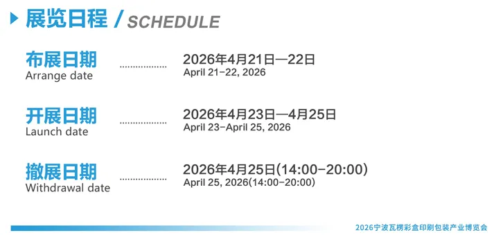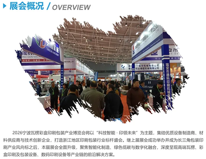 2026宁波瓦楞彩盒印刷包装产业博览会将于4月23日-25日在宁波国际会展中心举办。本届展会将以“科技智能·印领未来”为主题,全面升级,聚焦智能化制造、绿色低碳与数字化融合,深度呈现高端瓦楞、彩盒印刷及包装设备、数码印刷设备等产业链的前沿解决方案。