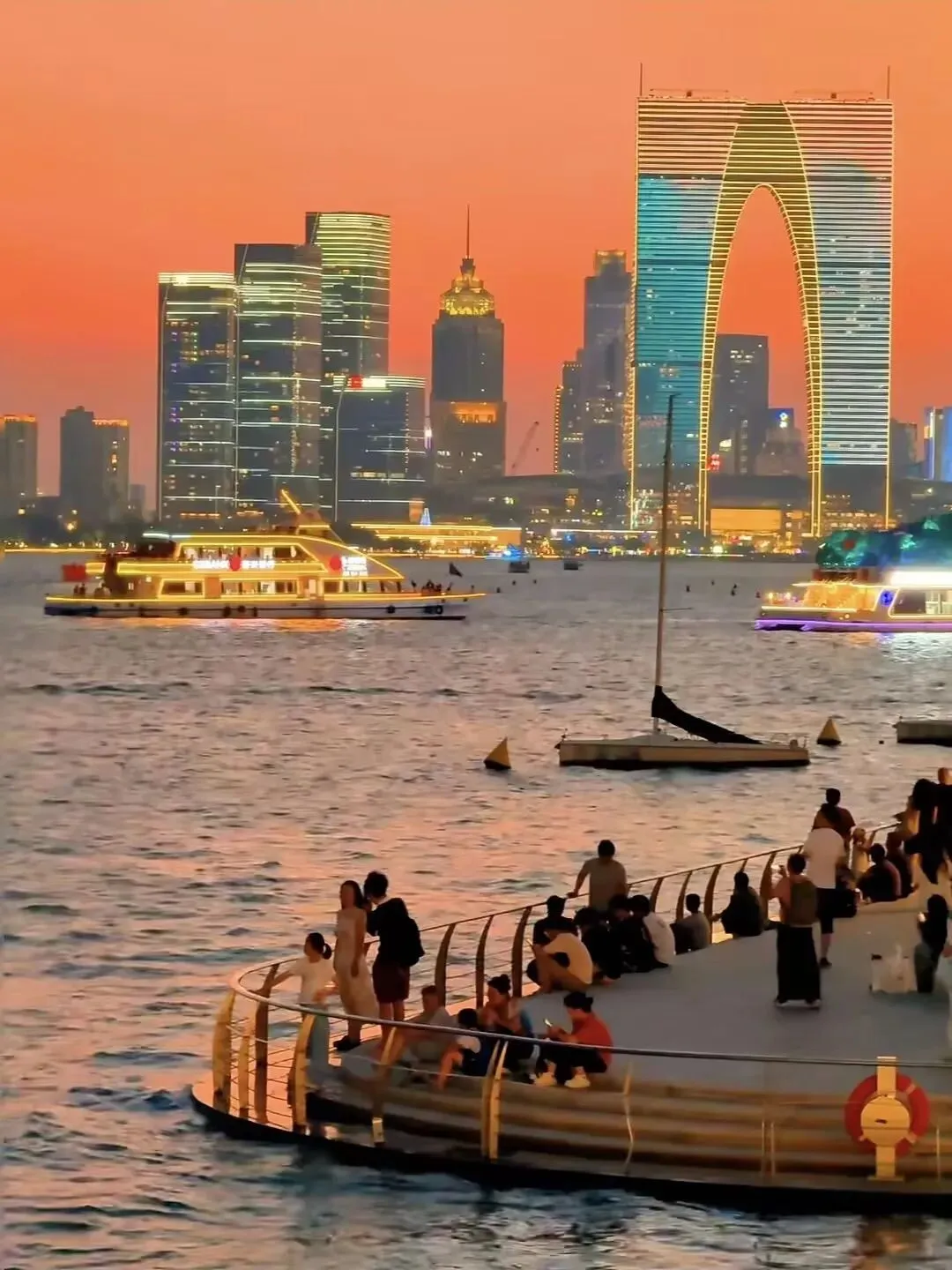 【简介】现代湖泊/城市景观:开放式国家5A级景区,现代苏州的代表,拥有“苏州中心”、“东方之门”、“音乐喷泉”等地标,适合夜晚漫步。