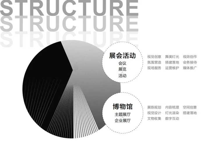 公司业务涵盖会议活动组织与策划、体育赛事运营、展览展示服务、展厅一体化设计施工以及品牌视觉创意设计等领域。