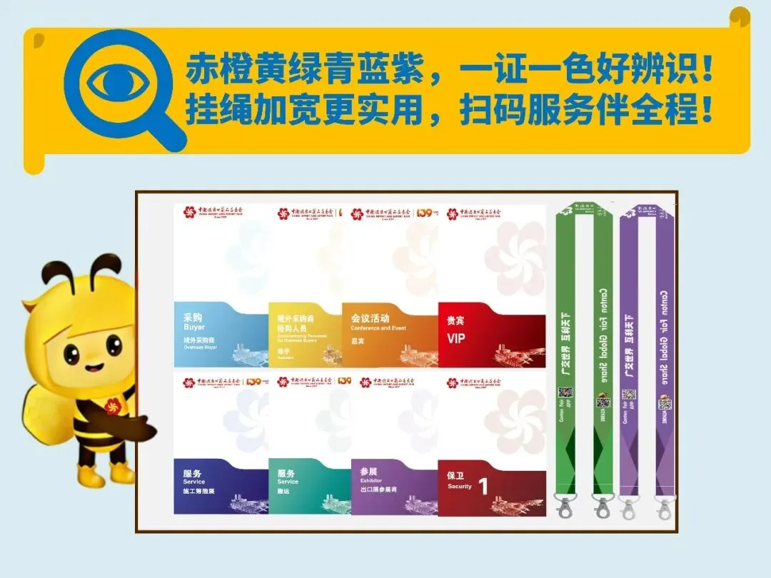 证件色彩明亮清晰,辨识度全面拉满!挂绳升级加宽,佩戴更舒适,加印“广交会APP”与“ASKME逛展智能体”二维码,便捷又实用。
