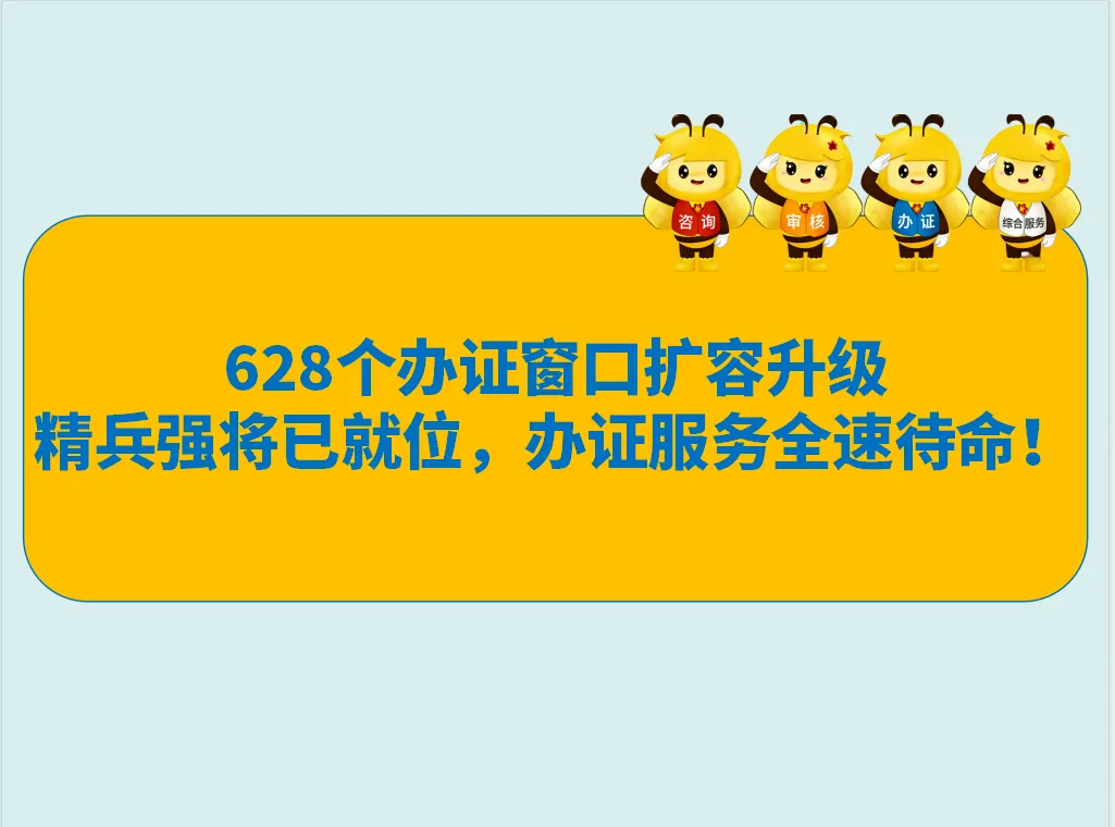 办证窗口扩容至628个,服务力量再升级,一线保障更有力!