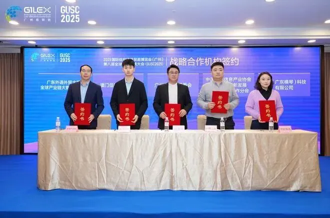 发布会现场,广东外语外贸大学全球产业链大数据实验室、世界地信之家、澳门低空经济协会等机构代表签订了系列合作协议,为展会注入强劲动能。