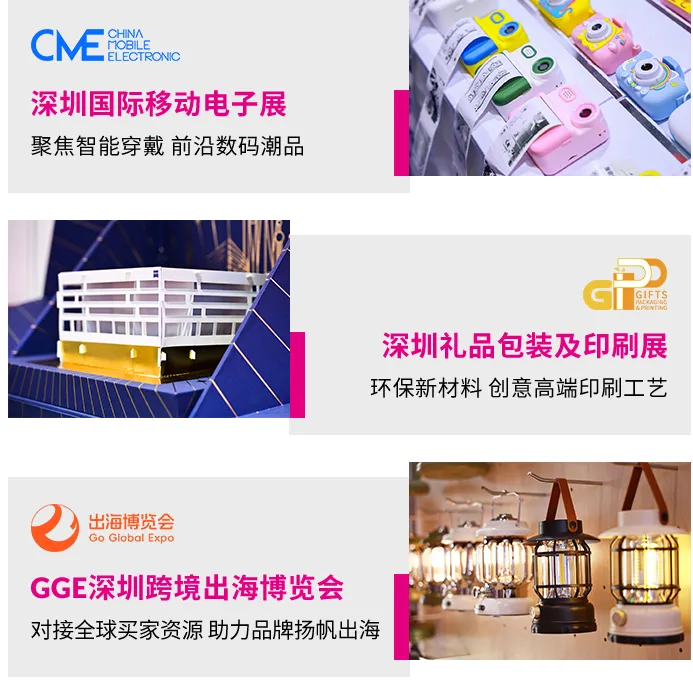 展会同步举办四大展会——深圳移动电子展、深圳礼品包装展、深圳跨境展、深圳ip授权展。以下为展会详情介绍,门票免费开放中。