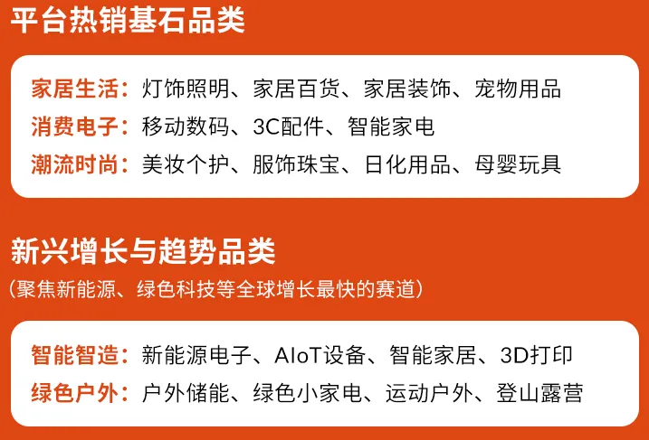 AI智能科技、智能穿戴、直播摄影器材、智能美护、户外/汽车电子、跨境电子、智慧养老