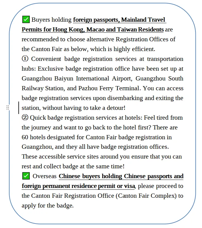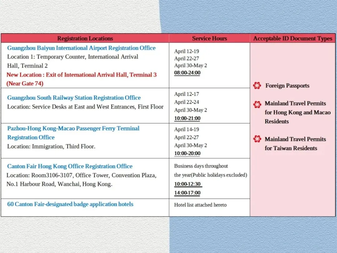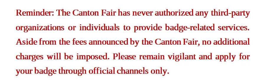 Remarks: The badge application process is subject to the final version released by the Canton Fair.