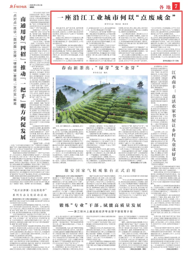 2026年4月2日,新华每日电讯刊发《一座沿江工业城市何以“点废成金”》,九江钢铁作为发展循环经济、高质量发展的典型获得报道。同步新华网客户端、新华社客户端、凤凰网、搜狐网、新浪网、腾讯网等媒体纷纷刊发转载。