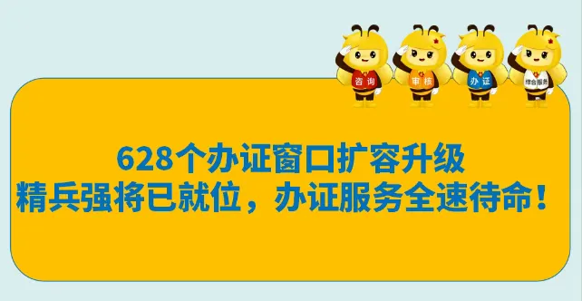 办证窗口扩容至628个,服务力量再升级,一线保障更有力!