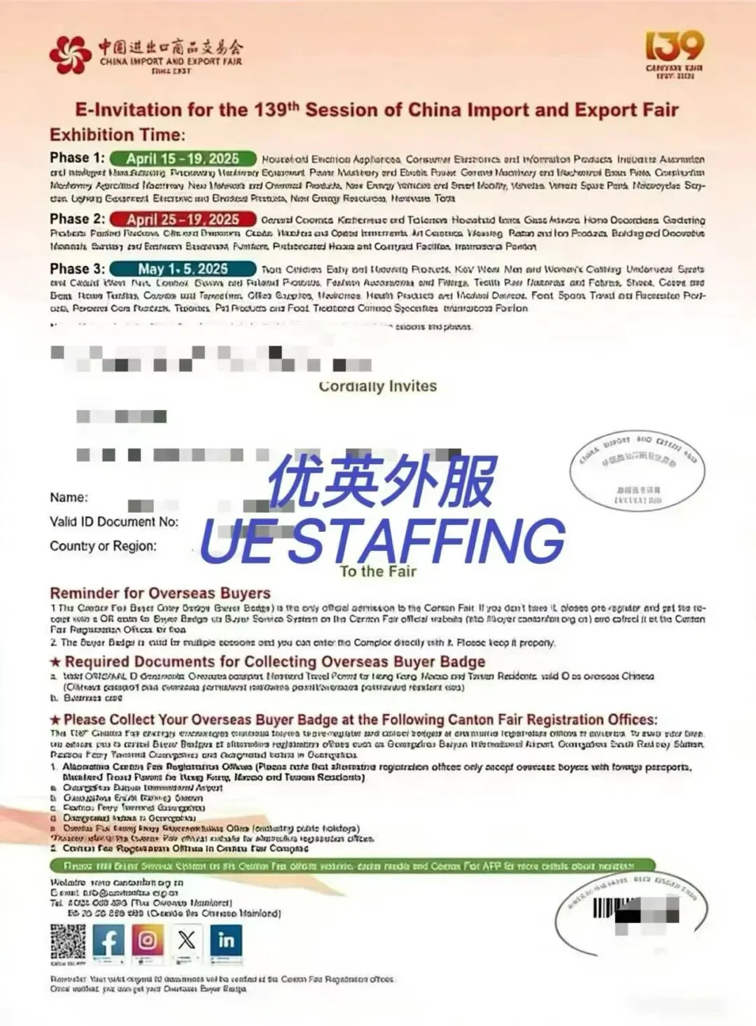 2. 入场凭证:凭函办理境外采购商证件,方可进入展馆洽谈采购。