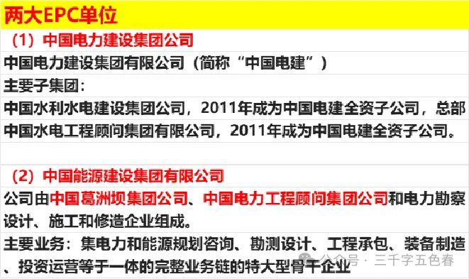 两大EPC单位:中电建、中能建;