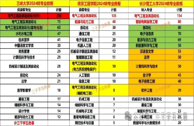 专业选择:笔者建议,在电力院校,优选电气专业,那么电气分数和排名这么高,因此一定要多思考,多对比,对比三年电气的分数和排名情况,结合自己的情况,避免被调剂到其他专业;经济条件许可的情况下,可以考虑各个院校的电气中外合作专业组。