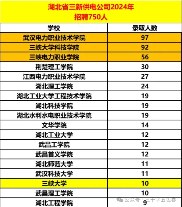 还有一个专科院校:三峡电力职业学院,也有12人被录用