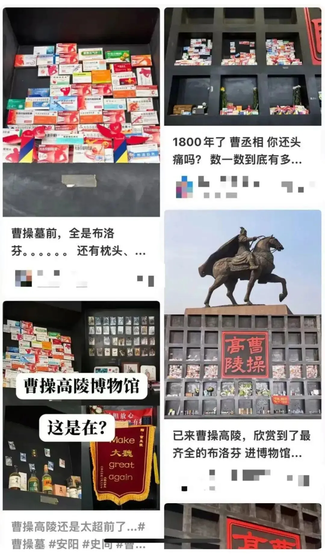 近日,清明祭扫,本是肃穆追思的时刻,可今年河南安阳曹操高陵遗址博物馆,却上演了一幕全网爆笑又暖心的名场面,直接火遍社交平台,被网友戏称为“布洛芬博览会”。