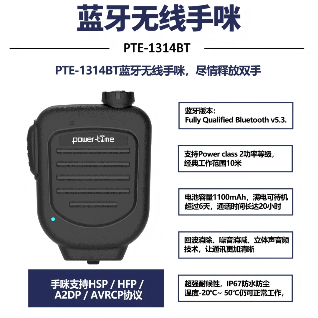 本次展会首发的PTE-1314BT蓝牙无线手咪,专为专业对讲机打造,以硬核性能成为现场焦点: