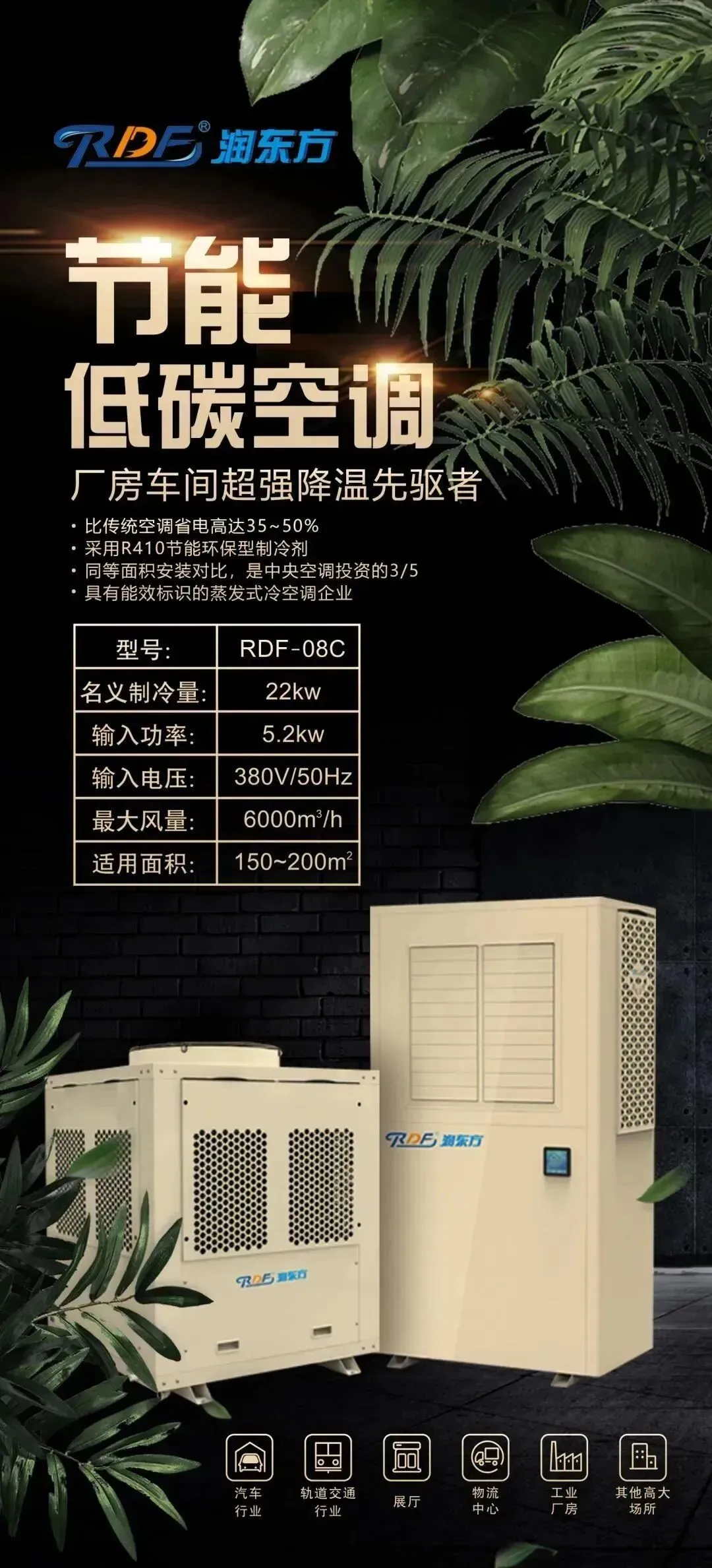 作为润东方经典主力产品,蒸发式冷风机以高效能、低投资、节能环保成为展会焦点。采用先进蒸发冷却技术,在快速输送清凉空气、改善车间环境的同时,大幅降低能耗与运行成本,结构紧凑、适用场景广泛,是工业厂房通风降温的理想之选。