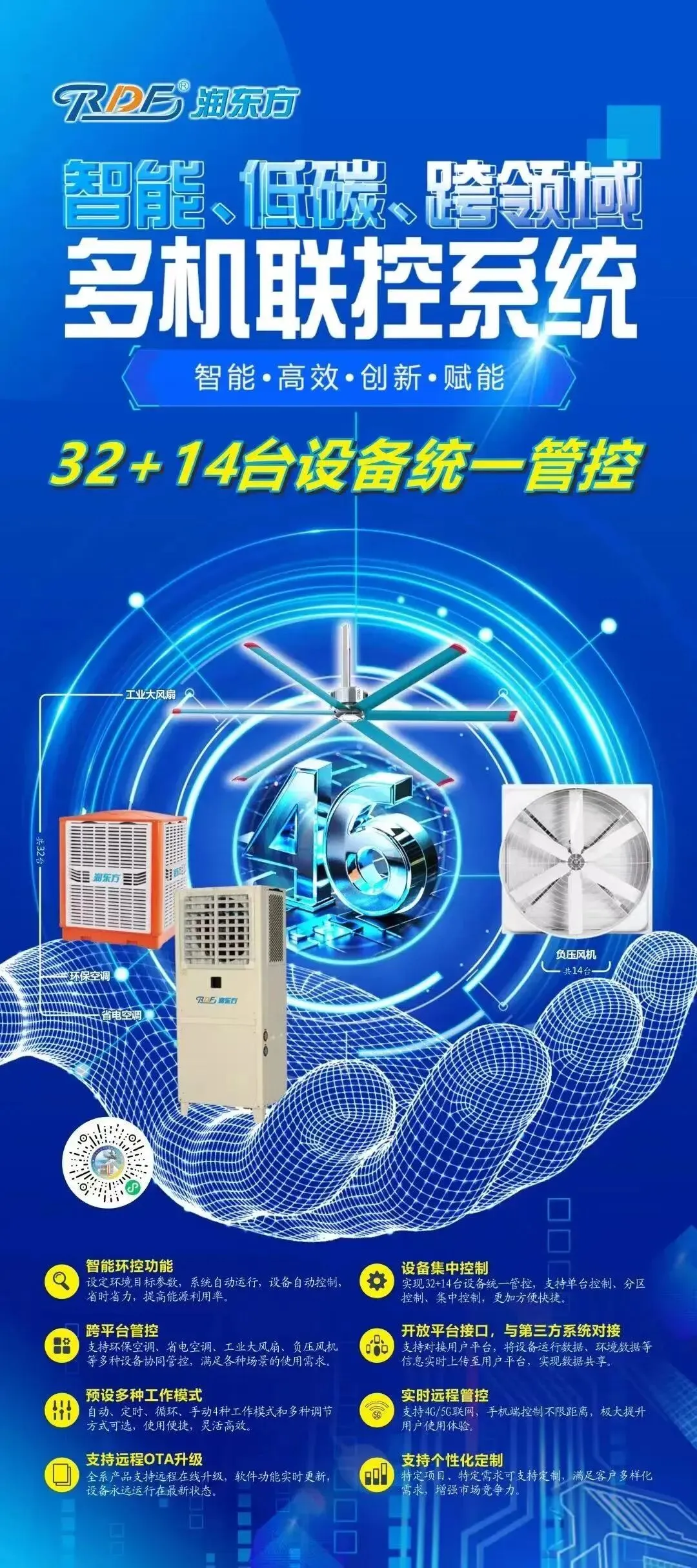 本次展会,润东方智能多机联控系统再次成为技术亮点。系统支持多设备统一集中管控,可根据环境参数自动调节运行策略,具备自动、定时、循环、手动等多种工作模式,支持远程控制与在线升级,实现多维度可视化管理,为大型厂区提供一体化智慧环境管控解决方案。