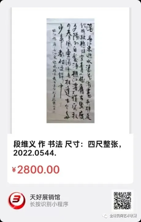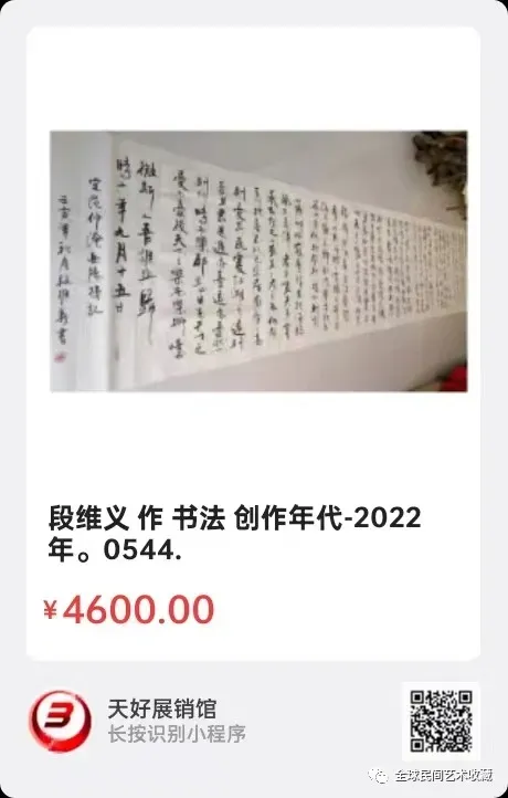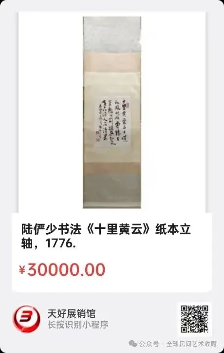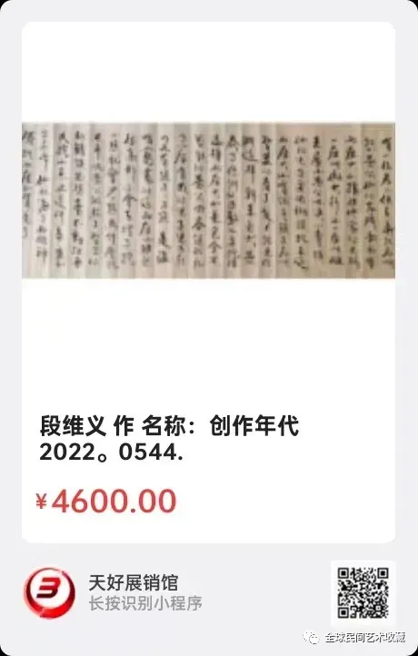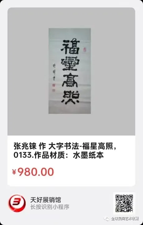 网络展销地址:《全球民间艺术收藏》《天好文化》,《天好展销馆》前二个微信公众号每期发布展讯,进《天好展销馆》购买。