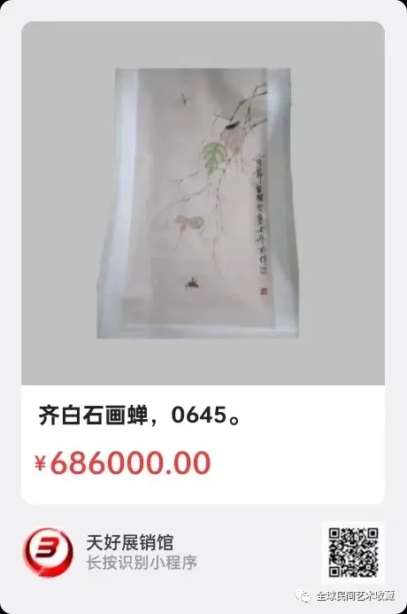 齐白石画蝉,长83.宽43公分,来源:0645。