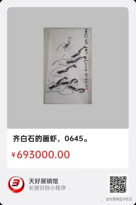 齐白石的画虾,长80,宽40公分,来源:0645。