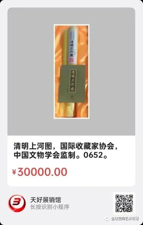 清明上河图,国际收藏家协会,中国文物学会监制。清明上河图,现代作品.画心长85cmⅩ宽21cm。來源:0652。