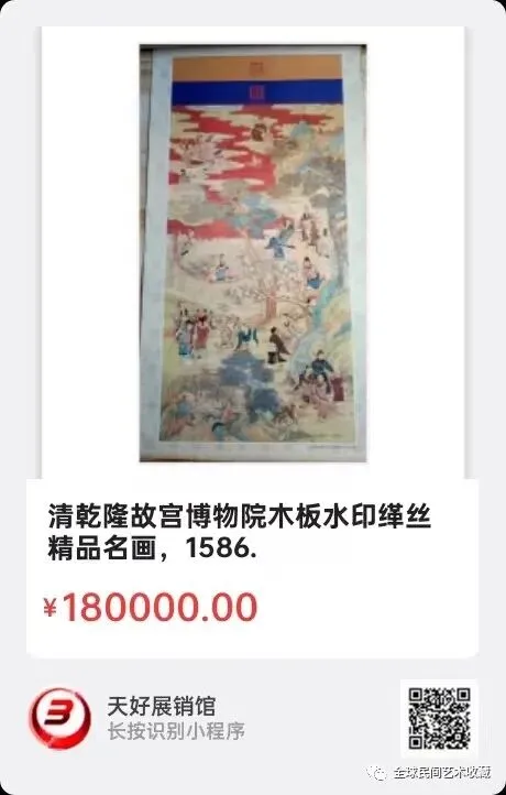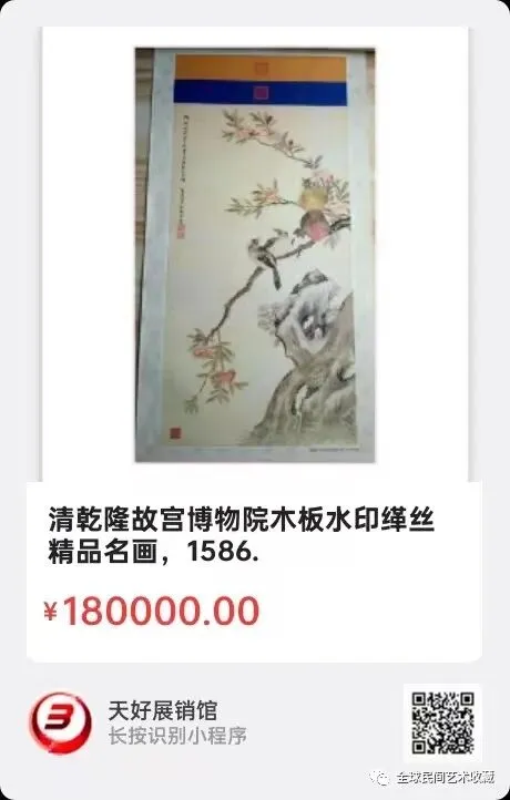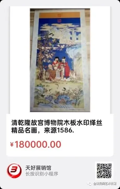 清乾隆故宫博物院木板水印缂丝精品名画,尺寸35X70公分,来源1586.