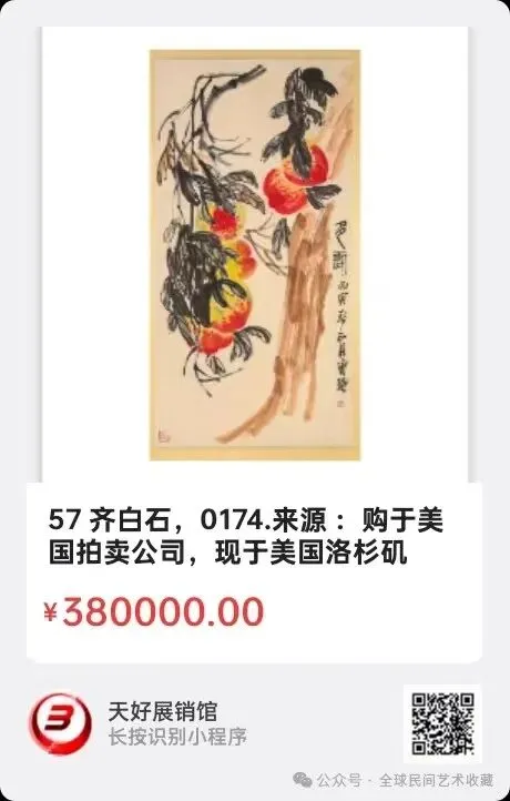 57 齐白石来源 :购于美国拍卖公司,现于美国洛杉矶私人收藏。尺寸:高 133 cm 宽68.5cm ,来源 0174。