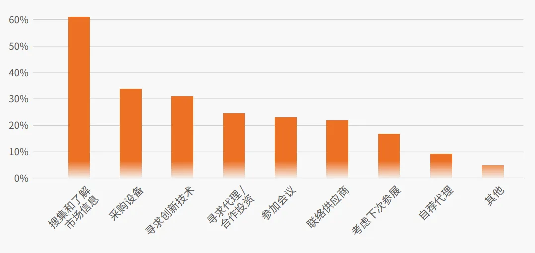 观众参观展会的目的主要包括搜集和了解市场信息、设备采购、寻求技术创新等,这进一步印证了 CWP 的专业性与产业导向价值。