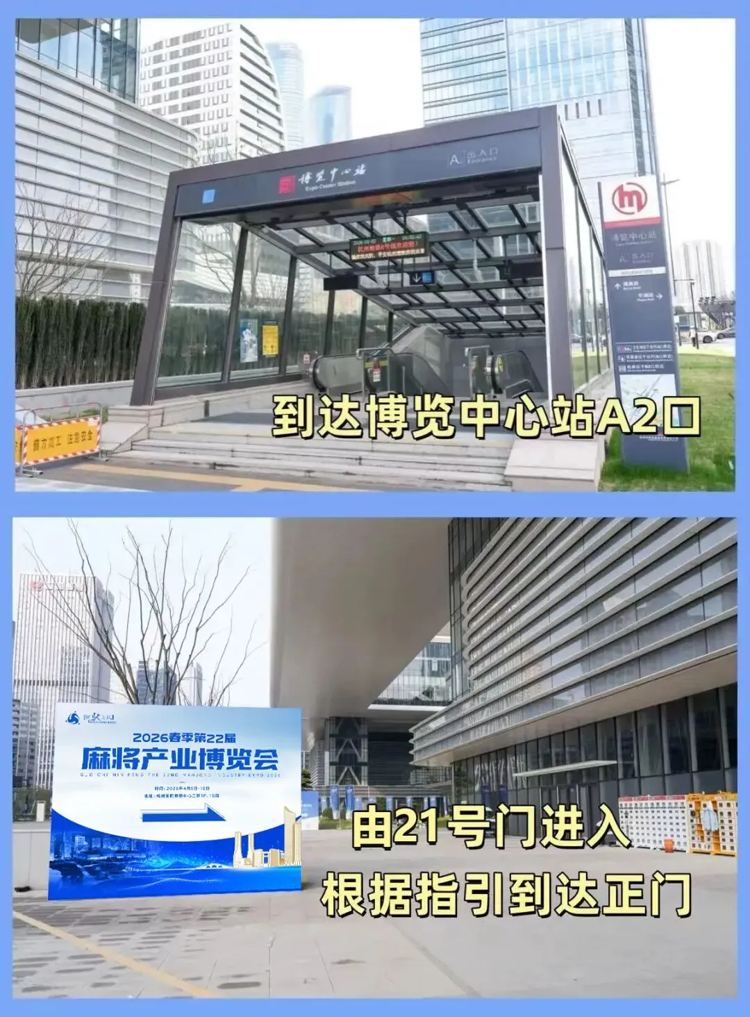 地铁:19号线(永盛路方向),火车东站(东广场)站(站内换乘)→6号线(双浦方向),博览中心(A2口)出,展馆21号门进。