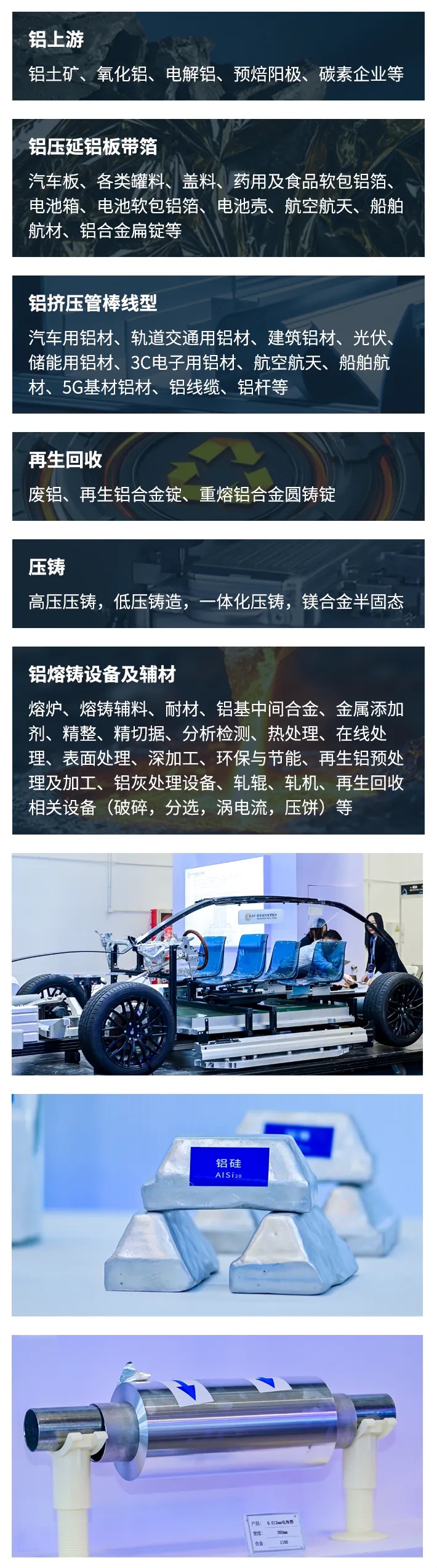 本届博览会实现铝产业全链条精准覆盖,展品涵盖铝上游原料、铝压延板带箔、铝挤压管棒线型、再生回收、压铸工艺、铝熔铸设备及辅材等六大板块,完整呈现从原料到终端应用的全产业链生态。