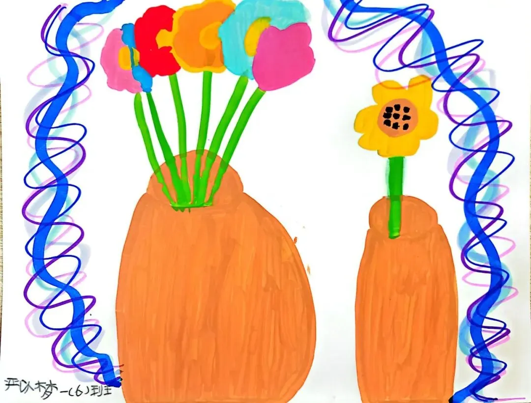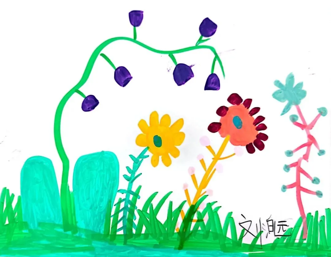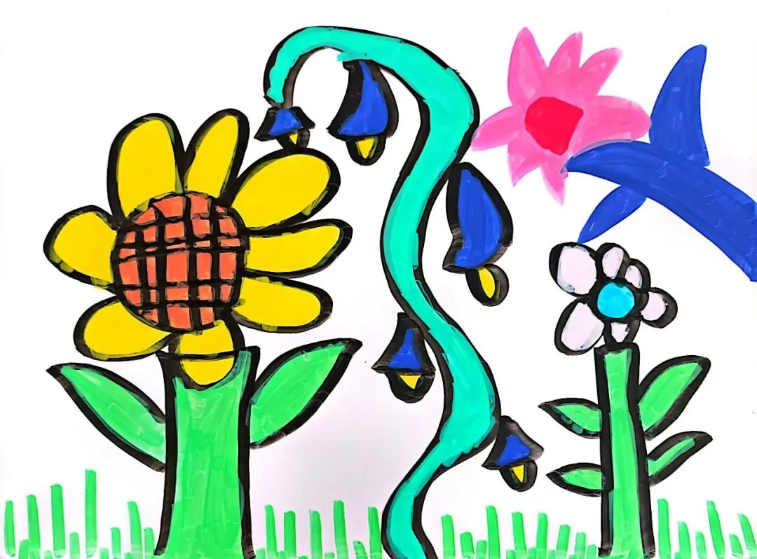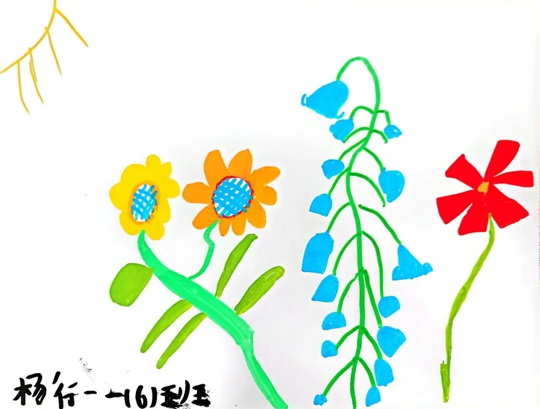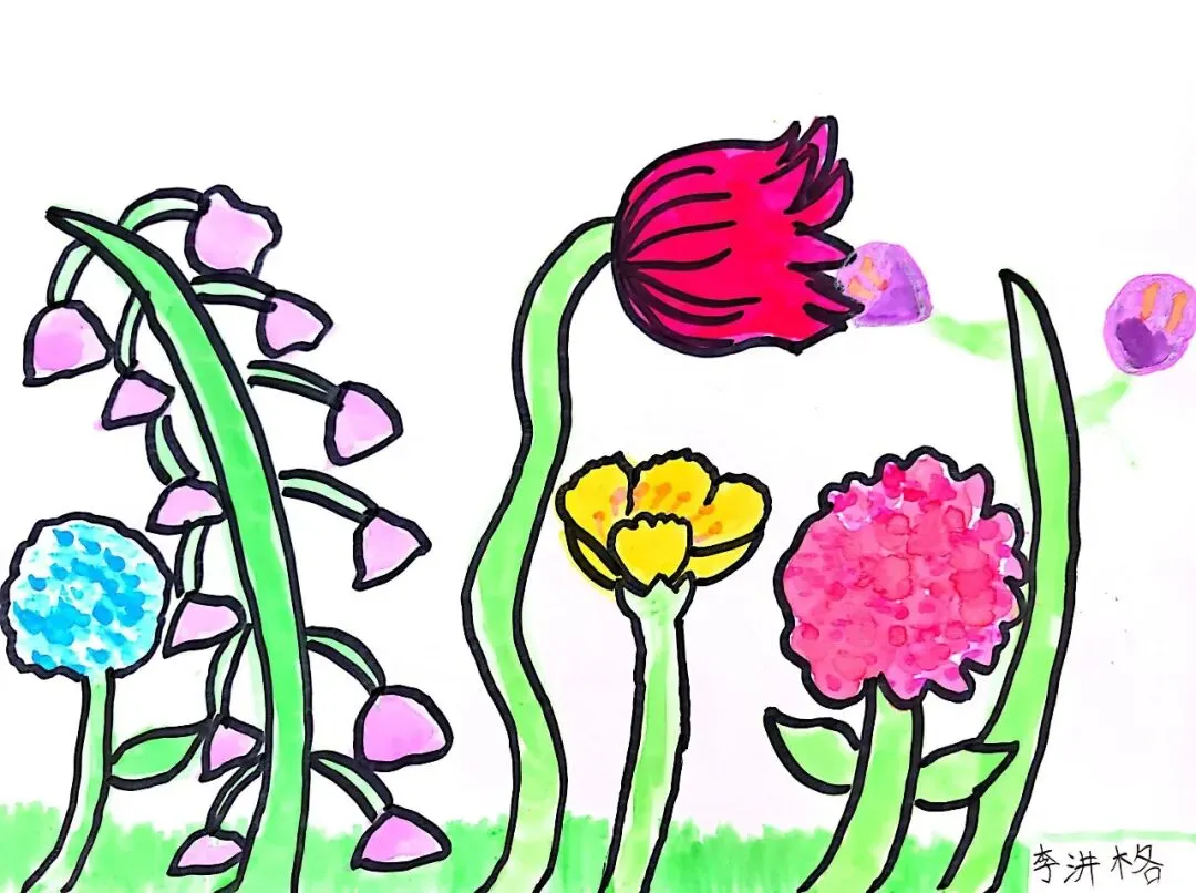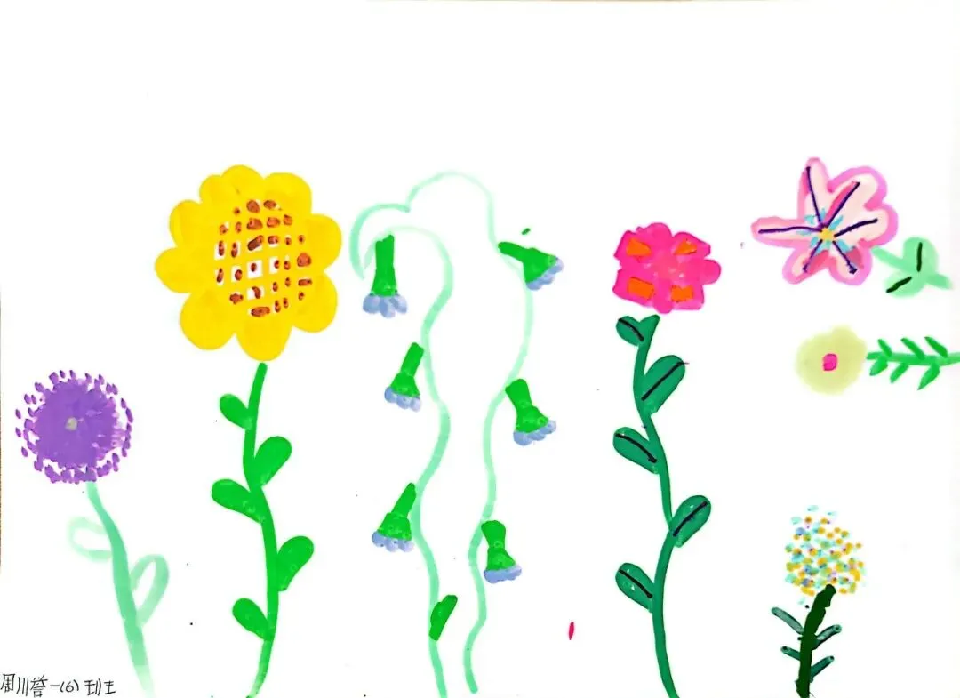 小小画笔,绘出花朵之美;童心烂漫,绽放自然芬芳。在《花朵之美》一课中,一年级的小朋友们认真观察花朵的形状、色彩与姿态,用稚嫩的线条、鲜艳的色彩,画出了一朵朵可爱又生动的小花。