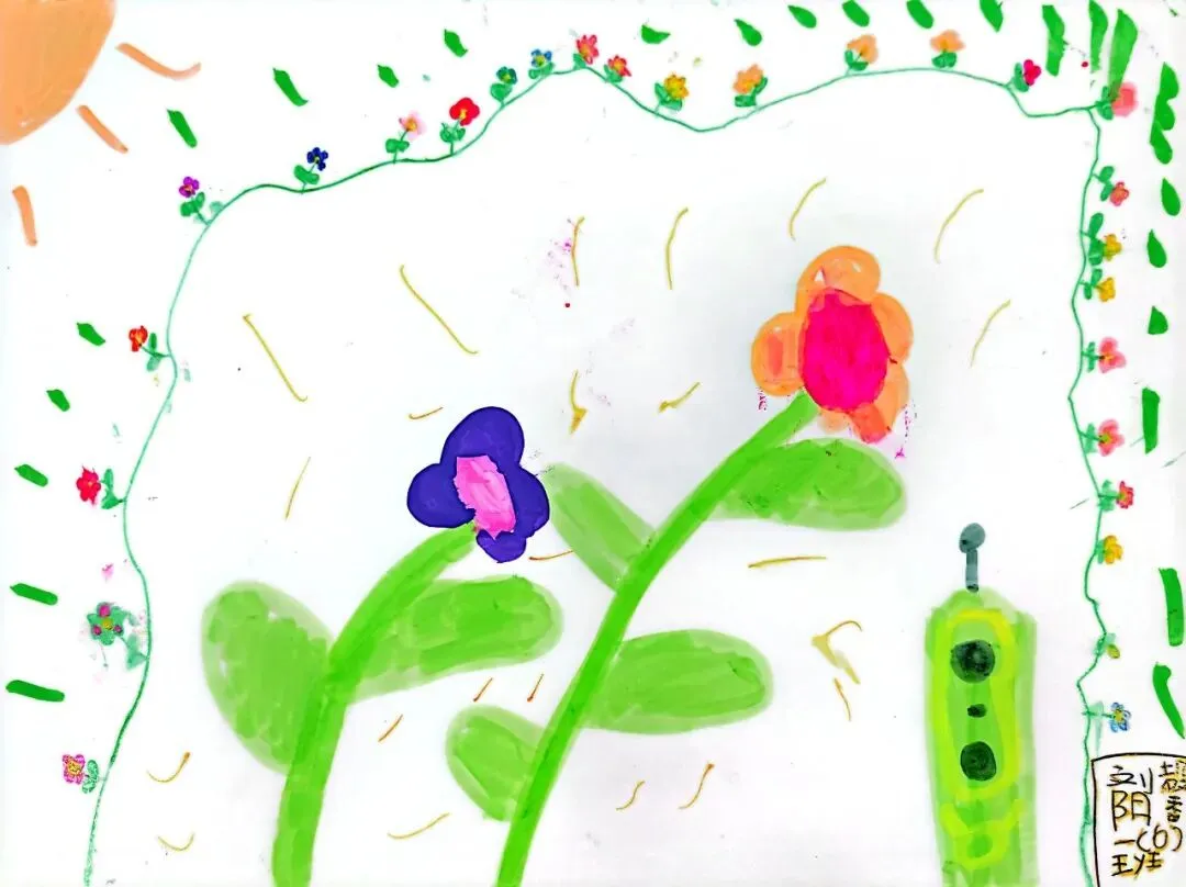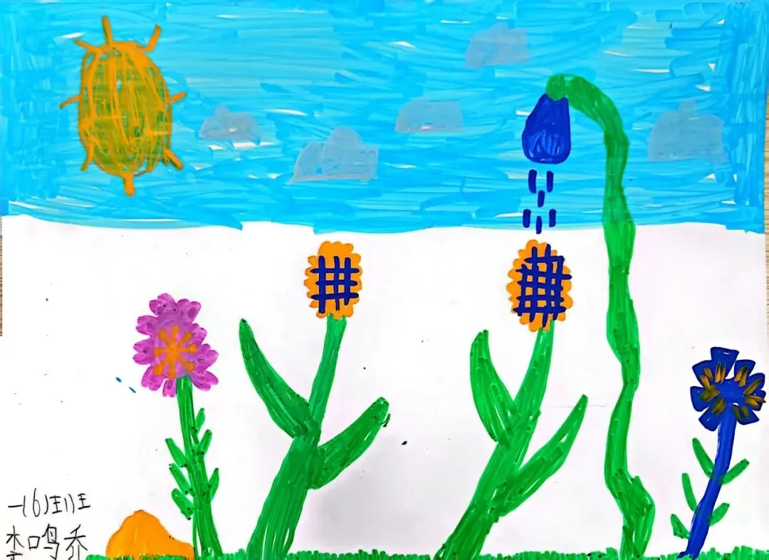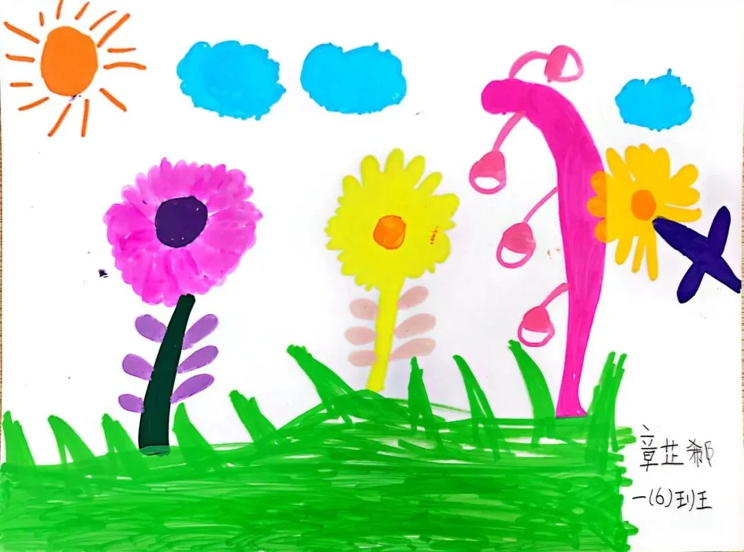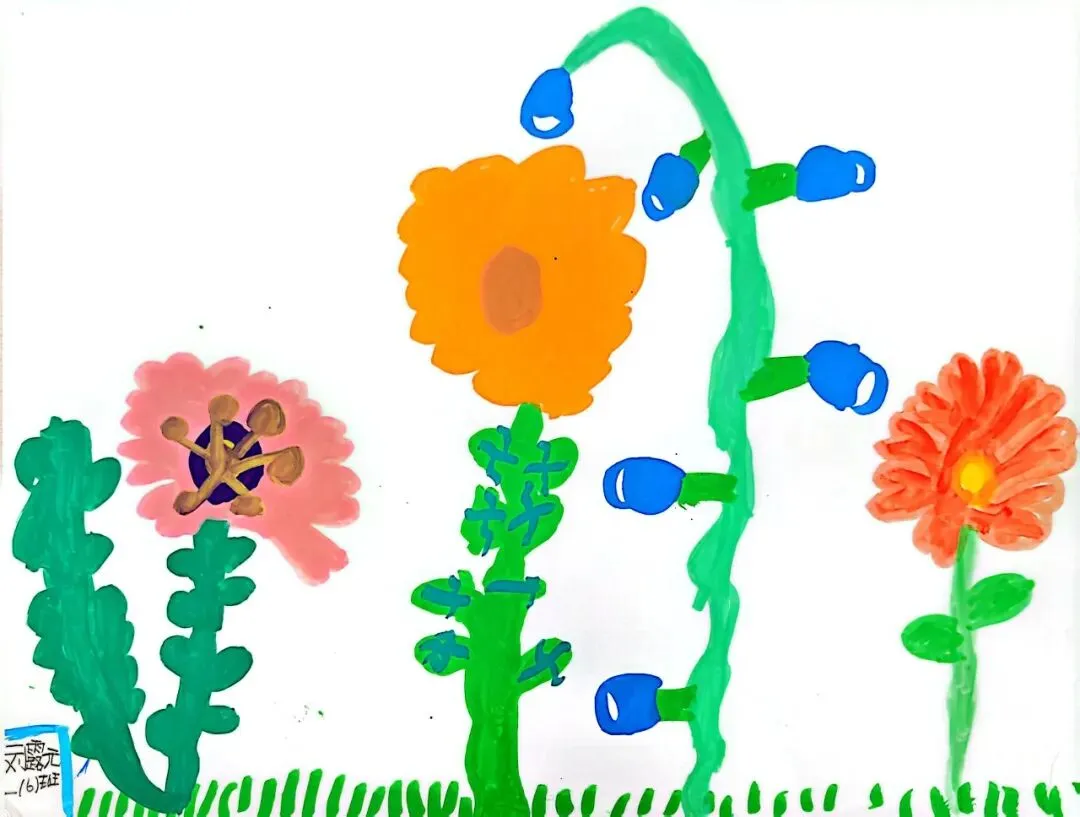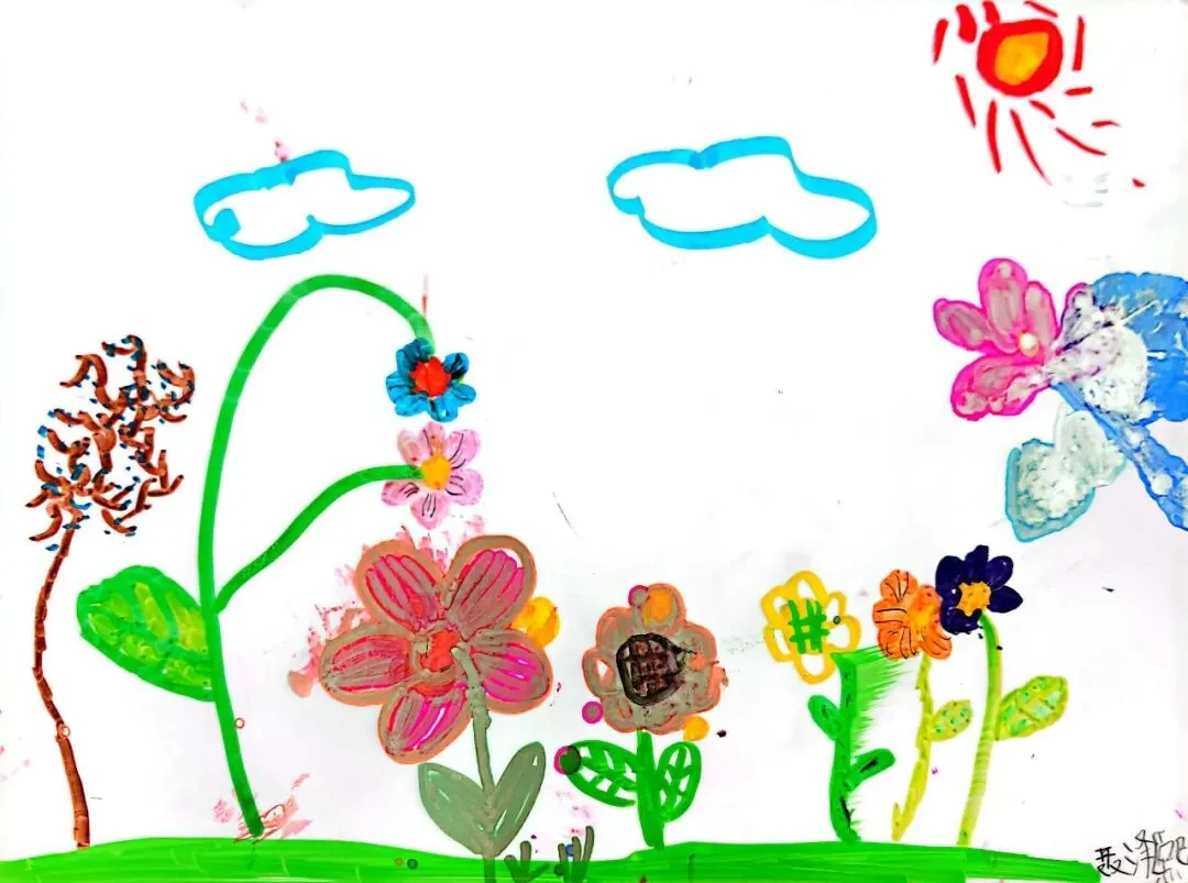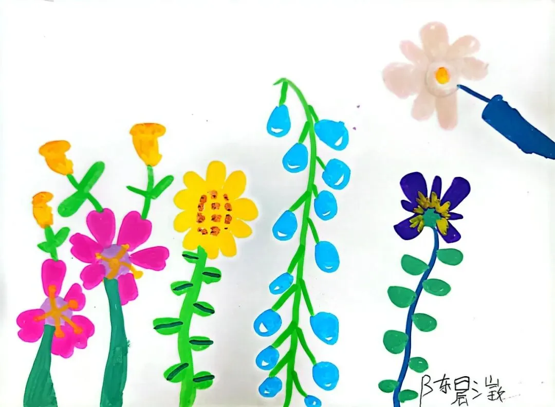 小小画笔,绘出花朵之美;童心烂漫,绽放自然芬芳。在《花朵之美》一课中,一年级的小朋友们认真观察花朵的形状、色彩与姿态,用稚嫩的线条、鲜艳的色彩,画出了一朵朵可爱又生动的小花。