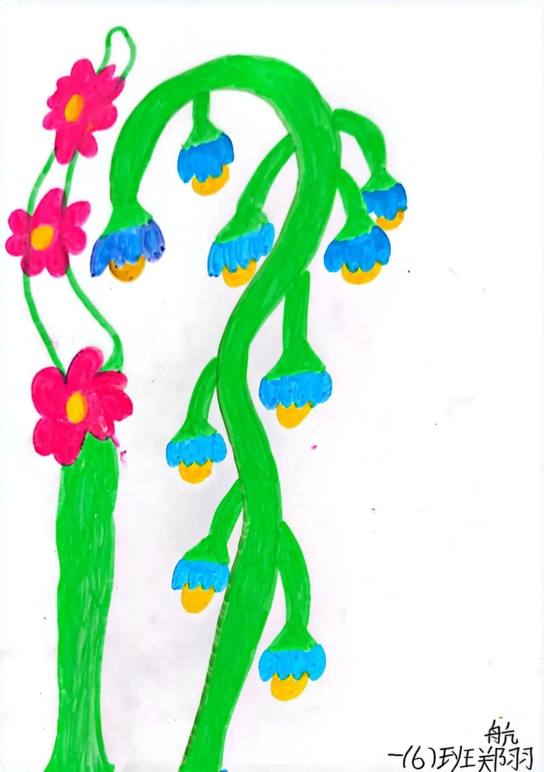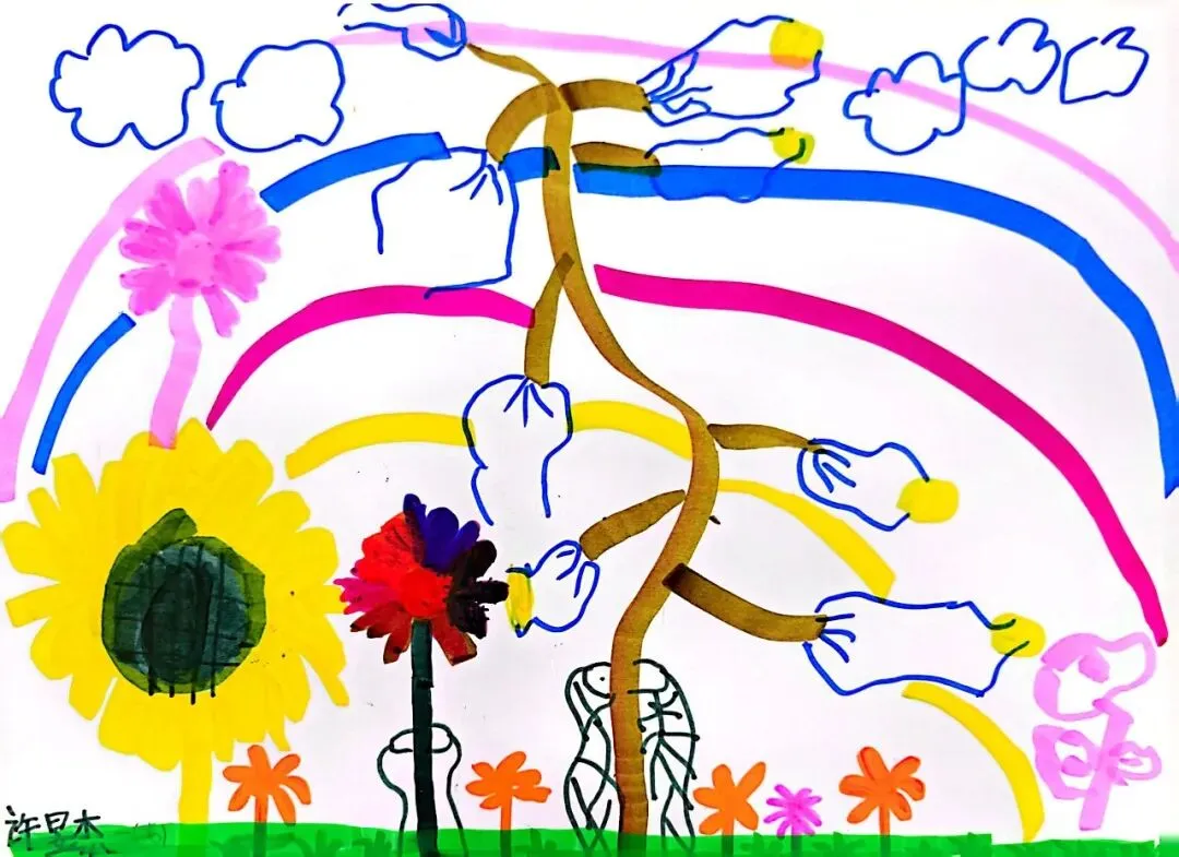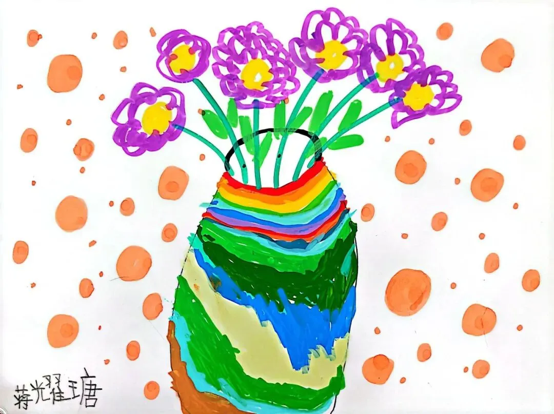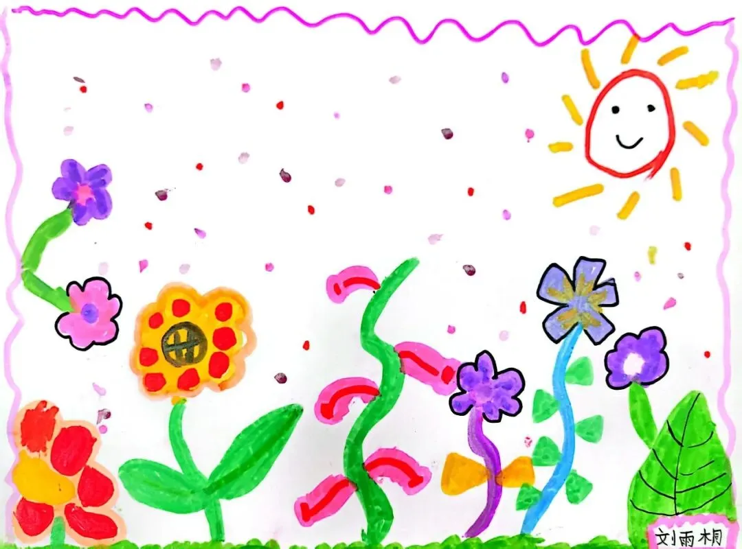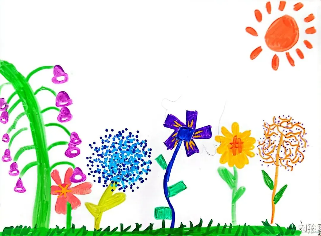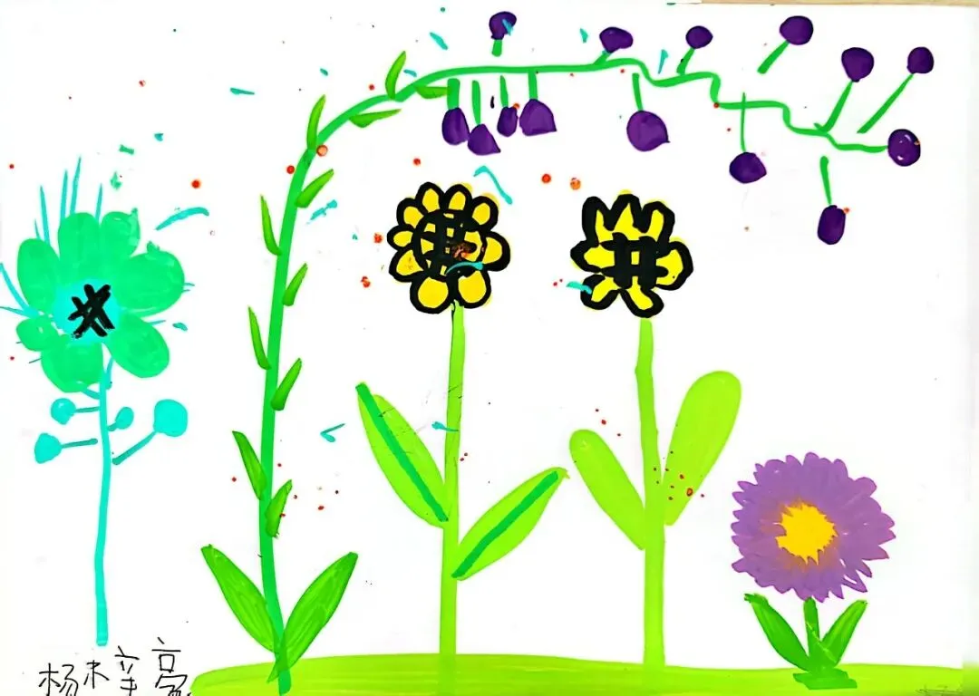 小小画笔,绘出花朵之美;童心烂漫,绽放自然芬芳。在《花朵之美》一课中,一年级的小朋友们认真观察花朵的形状、色彩与姿态,用稚嫩的线条、鲜艳的色彩,画出了一朵朵可爱又生动的小花。