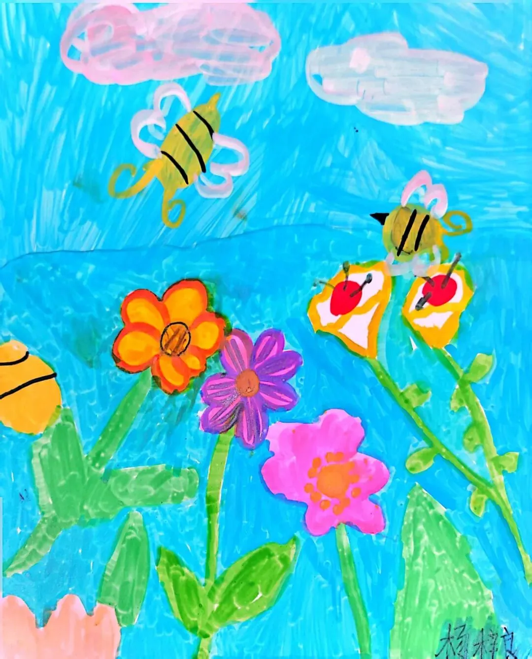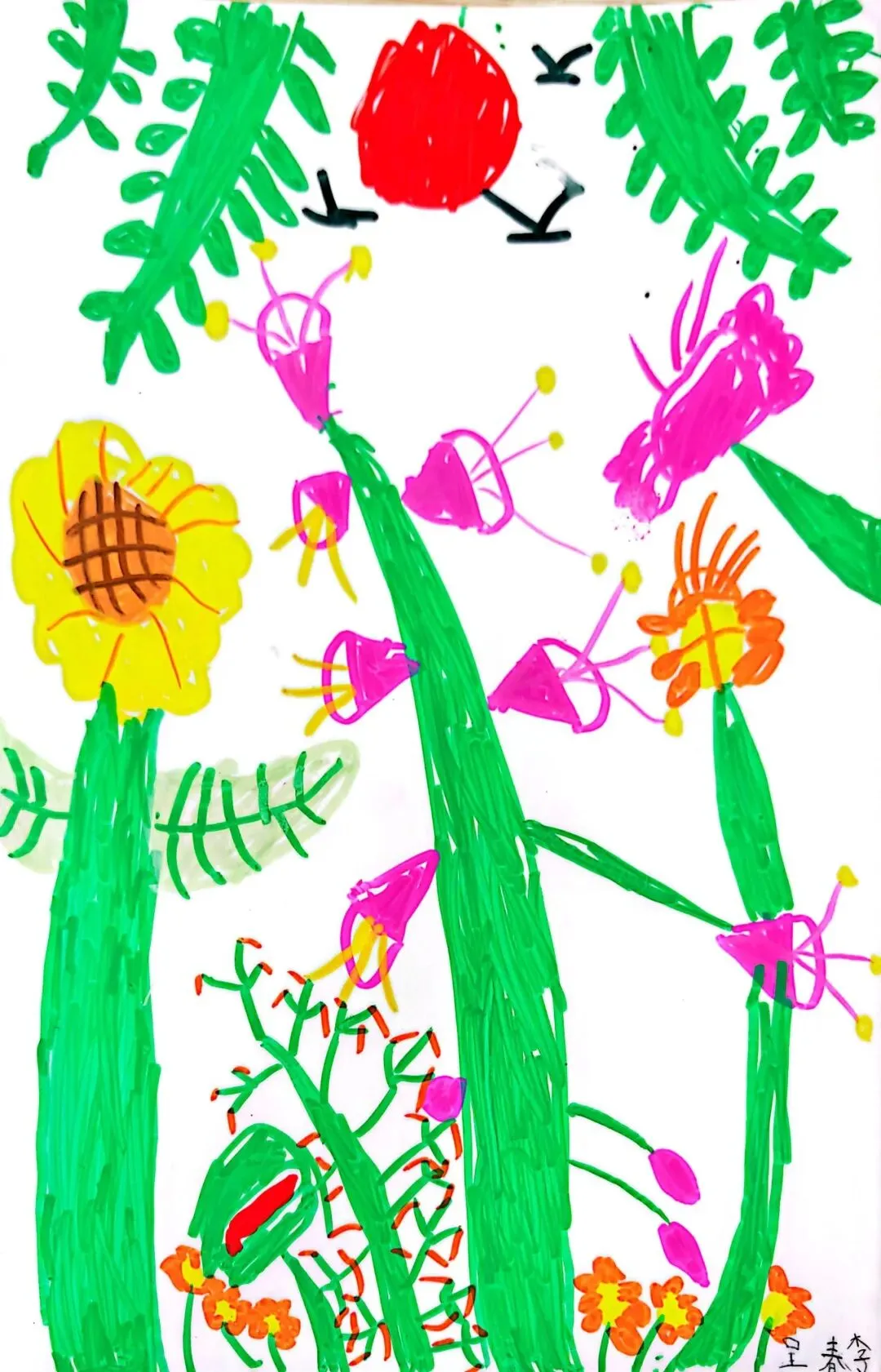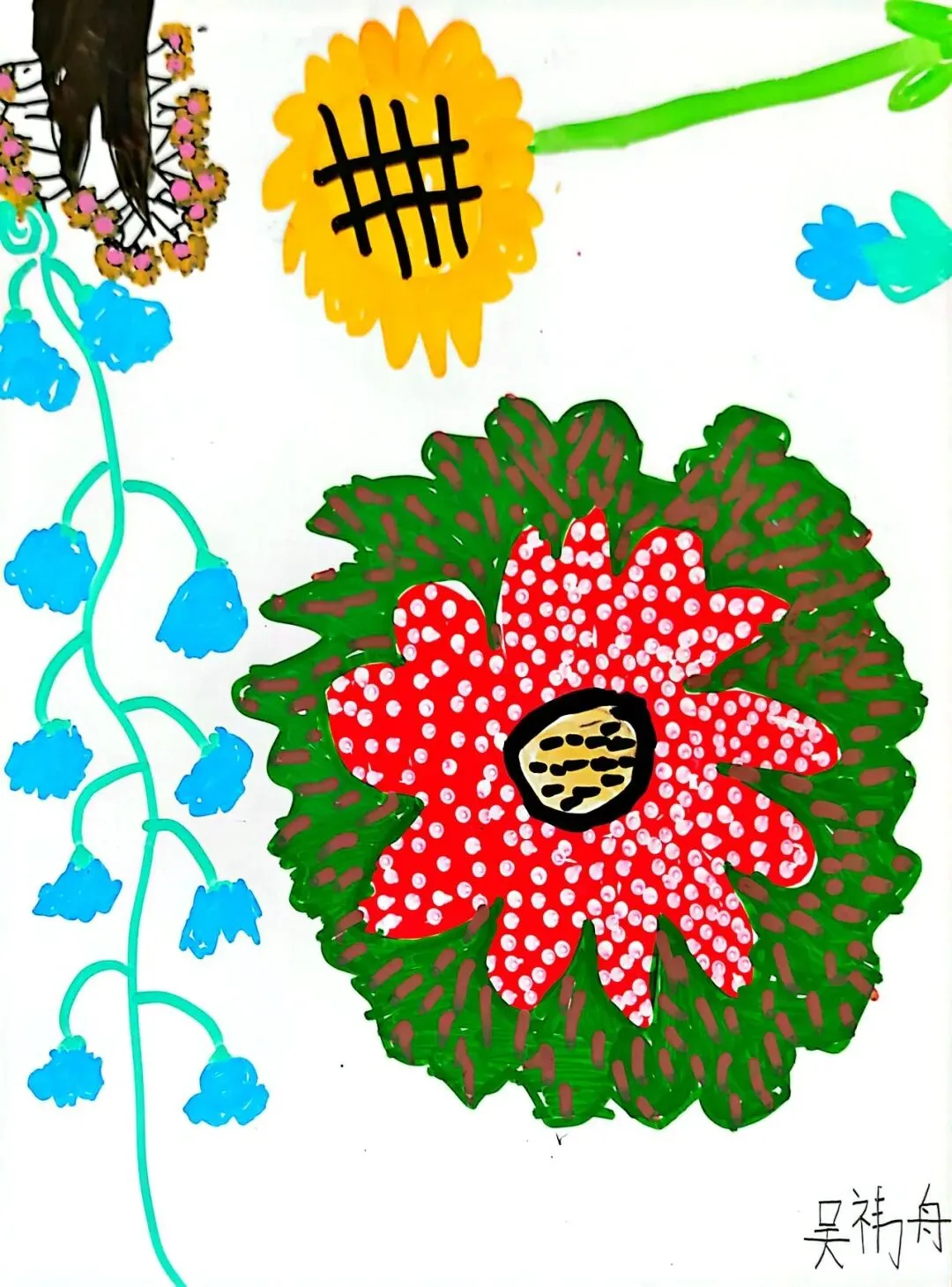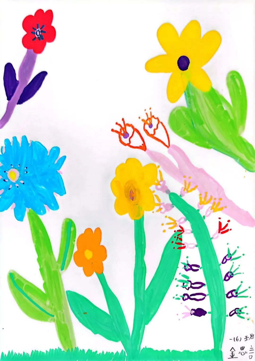 小小画笔,绘出花朵之美;童心烂漫,绽放自然芬芳。在《花朵之美》一课中,一年级的小朋友们认真观察花朵的形状、色彩与姿态,用稚嫩的线条、鲜艳的色彩,画出了一朵朵可爱又生动的小花。