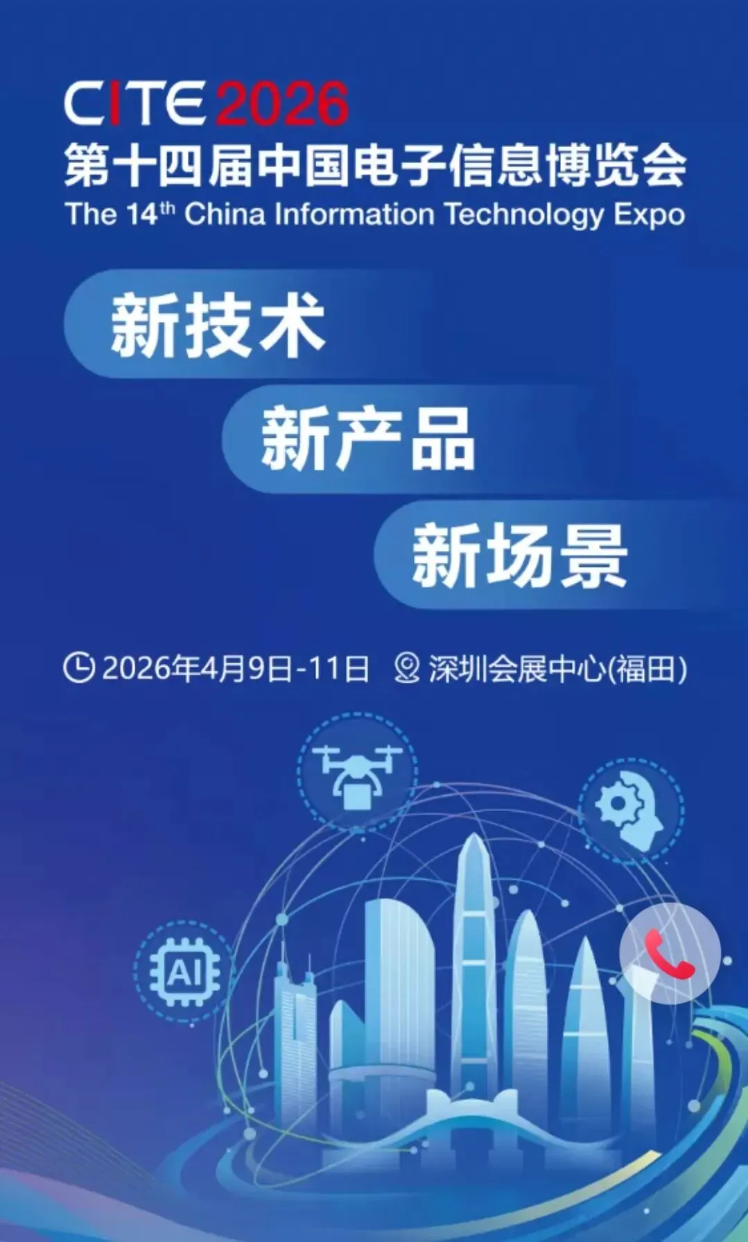 亚洲极具规模及影响力和产业链覆盖最完整的行业盛会——第十四届中国电子信息博览会(CITE 2026)将于2026年4月9日至11日在深圳会展中心(福田)隆重举行。