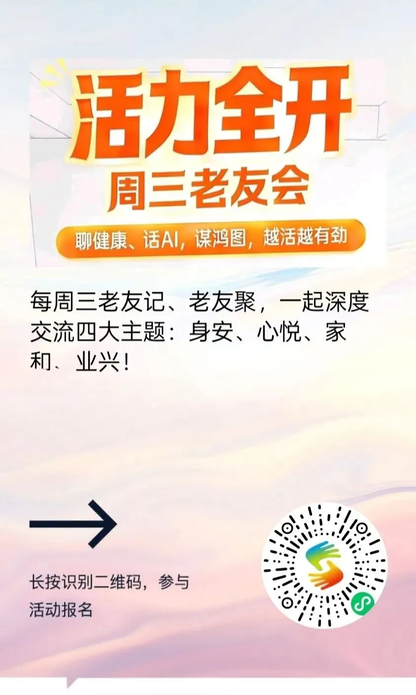尤其是周三老友会,聚焦在人的身健、心安、家和业兴,欢迎从事大健康领域、关注身心家业的朋友和遇到相关问题的朋友们一起交流探讨。