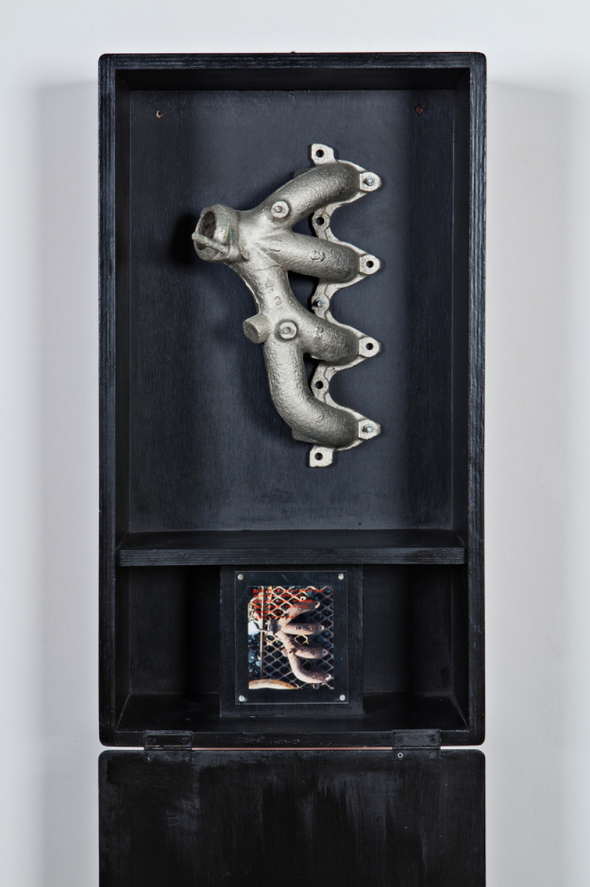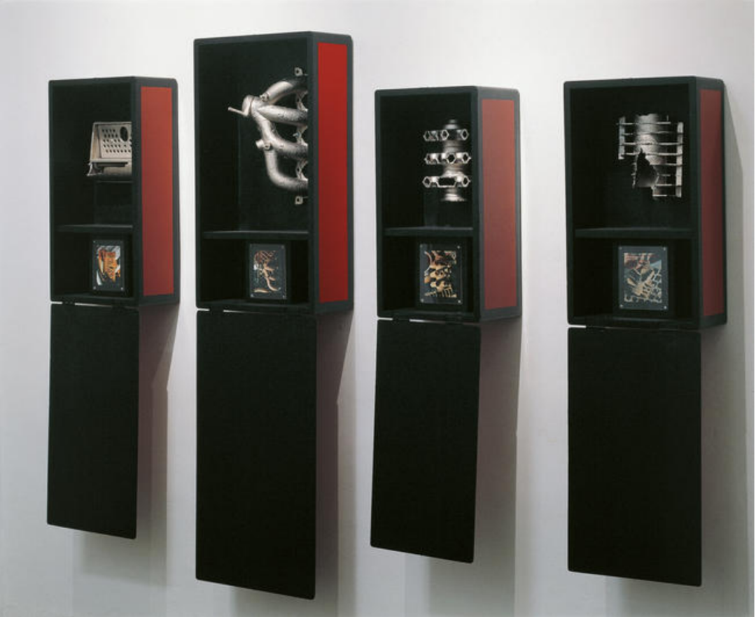 ▲ 陈箴《箱子/幽灵》Le Coffre / Le Fantôme, 1992, 木材、金属、镀镍现成物、照片、红色和黑色丙烯颜料、有机玻璃, 76 x 42 x 20 厘米 (闭合), 版数:独版, ©️艺术家与常青画廊